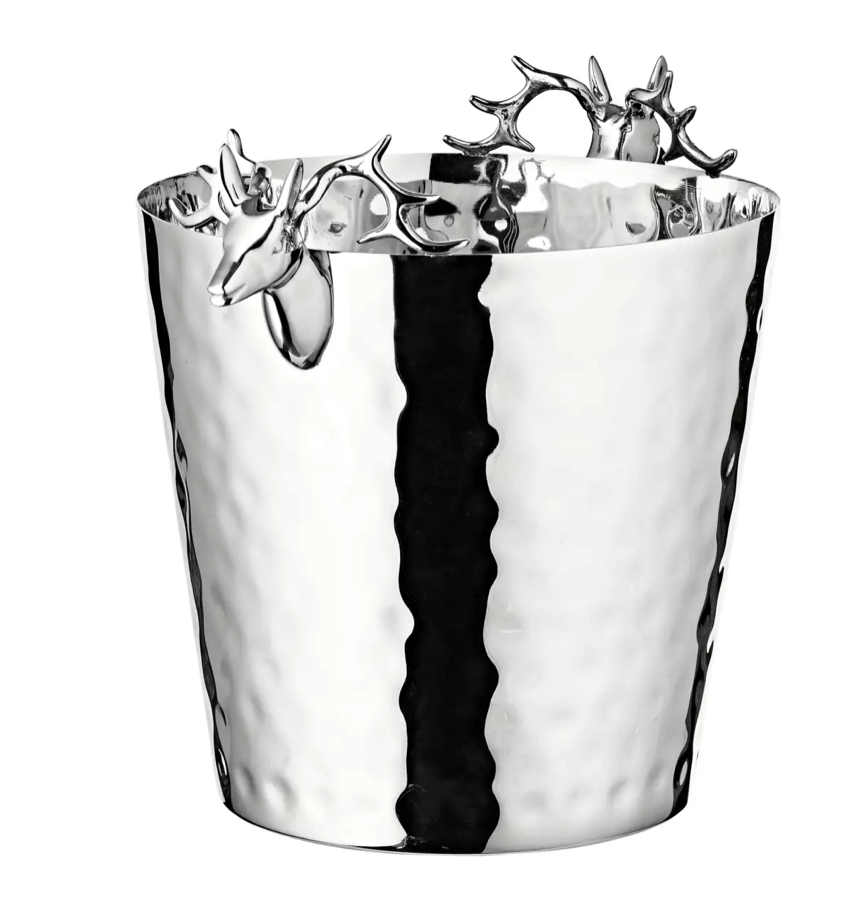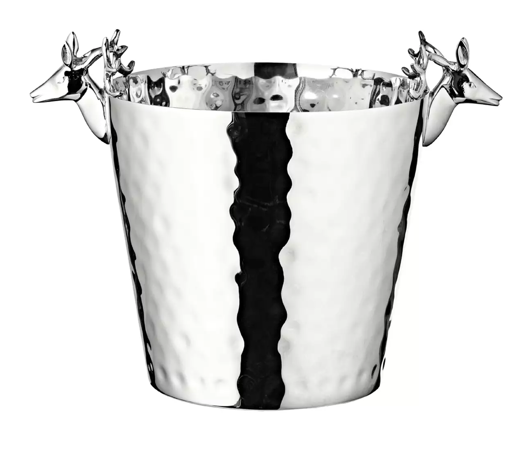 مبرد زجاجات Edzard Enit (ارتفاع 28 سم، Ø 20 سم)، مع مقابض رأس غزال، ستانلس ستيل، مطلي بالنيكل اللامع