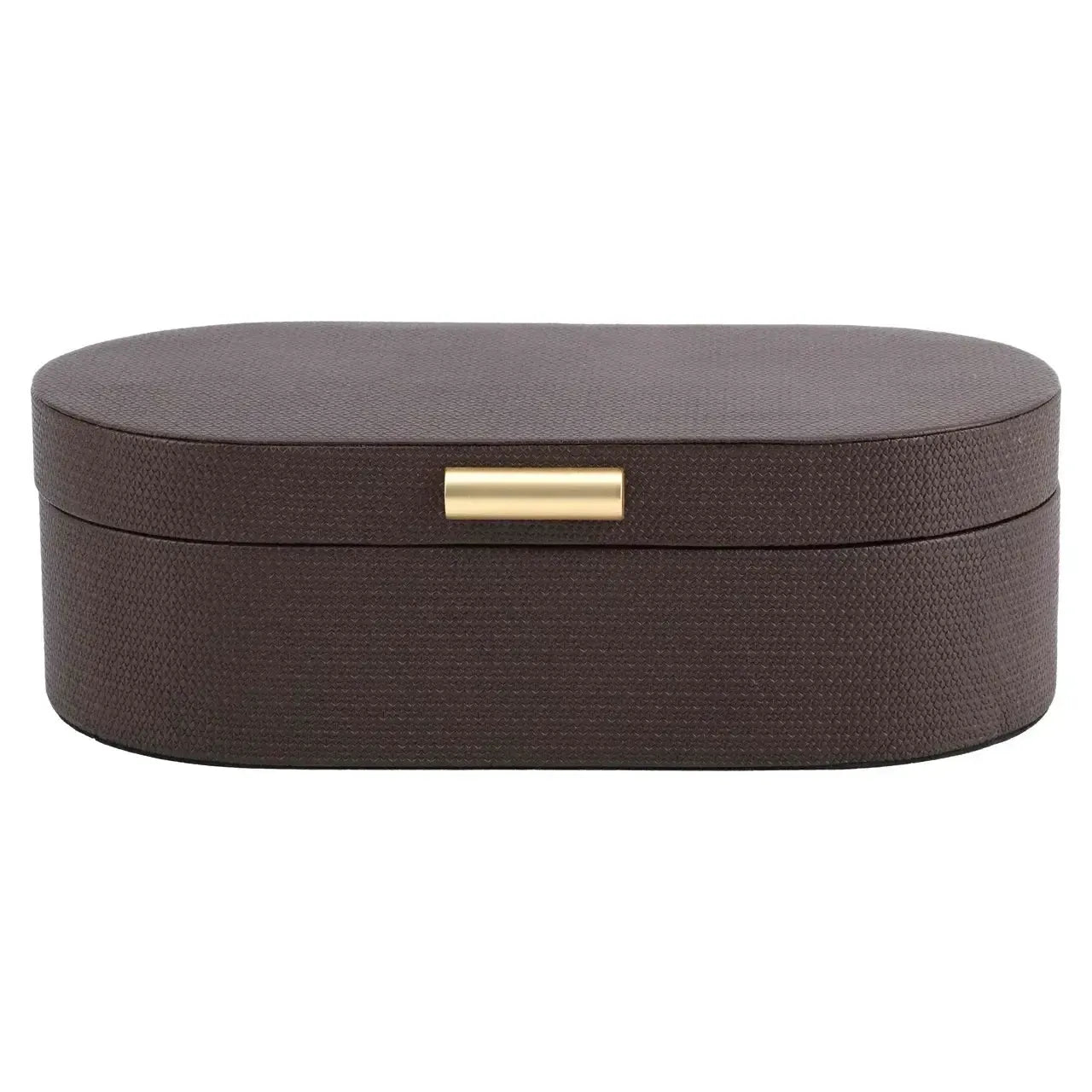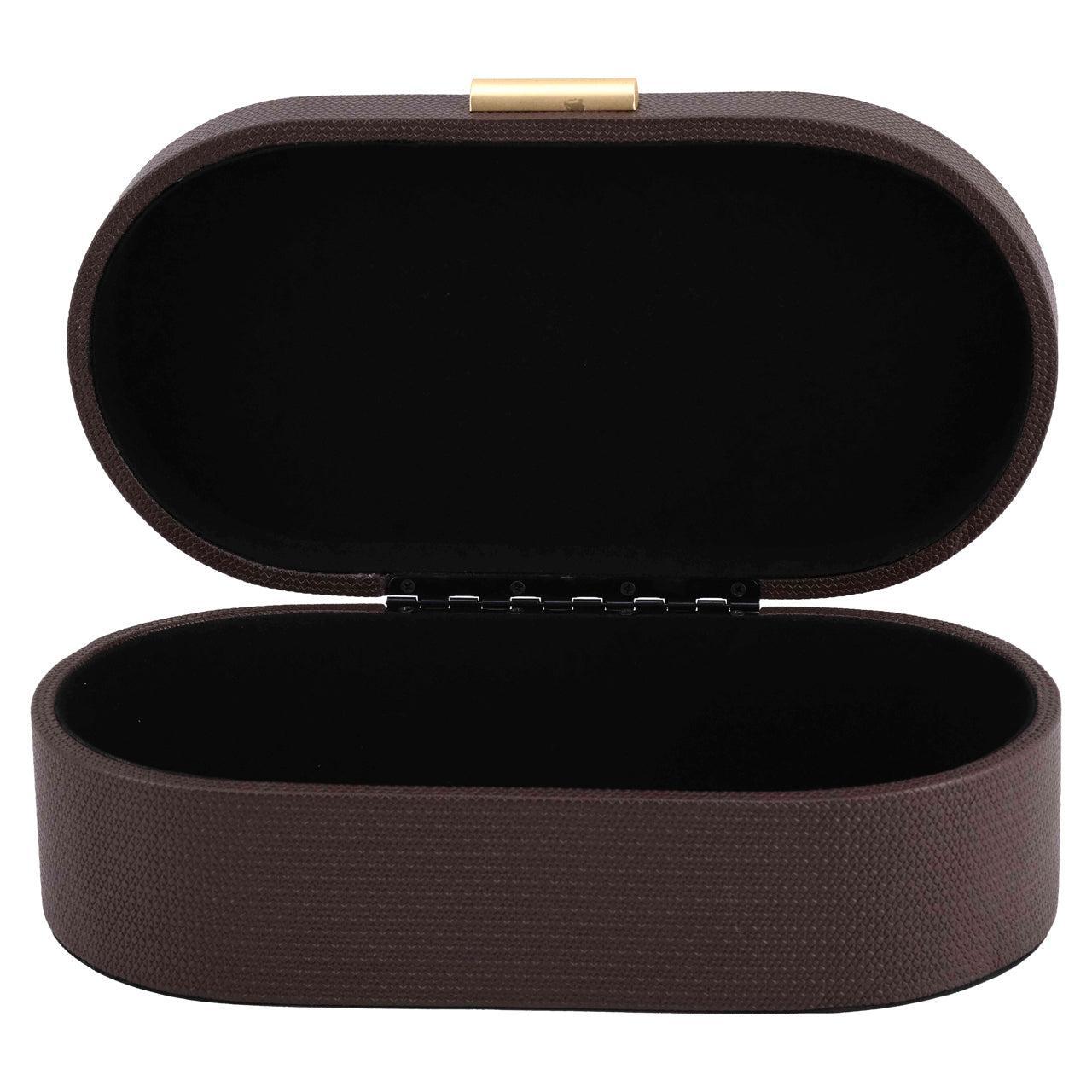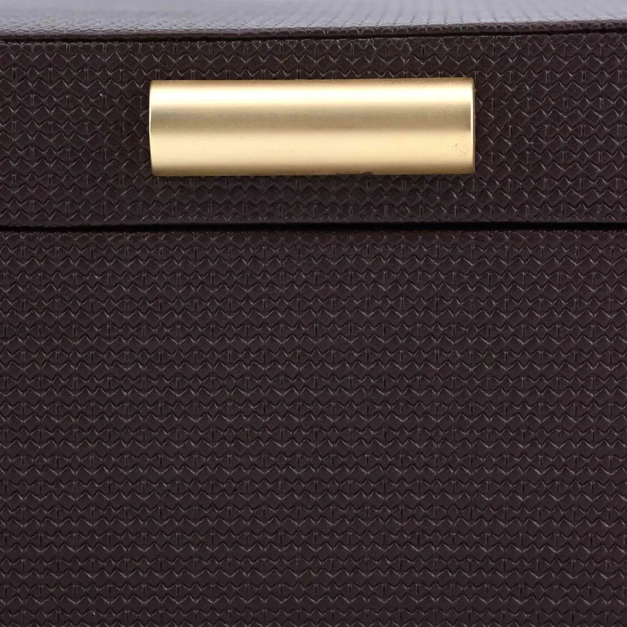 Eine elegante Aufbewahrungsbox, die Funktionalität mit einer warmen dekorativen Ausstrahlung verbindet. Der tiefe Braunton und die raffinierte Verarbeitung machen sie zu einem stilvollen Akzent auf einem Schrank, Sideboard oder Couchtisch. Ideal zum ordentlichen Aufbewahren kleiner Accessoires.