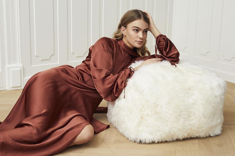 Der Hocker ist aus hochwertigem Lammfell angefertigt und hat eine Rückseite aus Kalbsleder. Die Stücke Lammfell wurden umsichtig abgepasst, um einen stimmigen Premium Hocker zu schaffen.