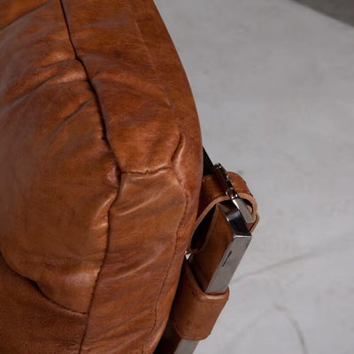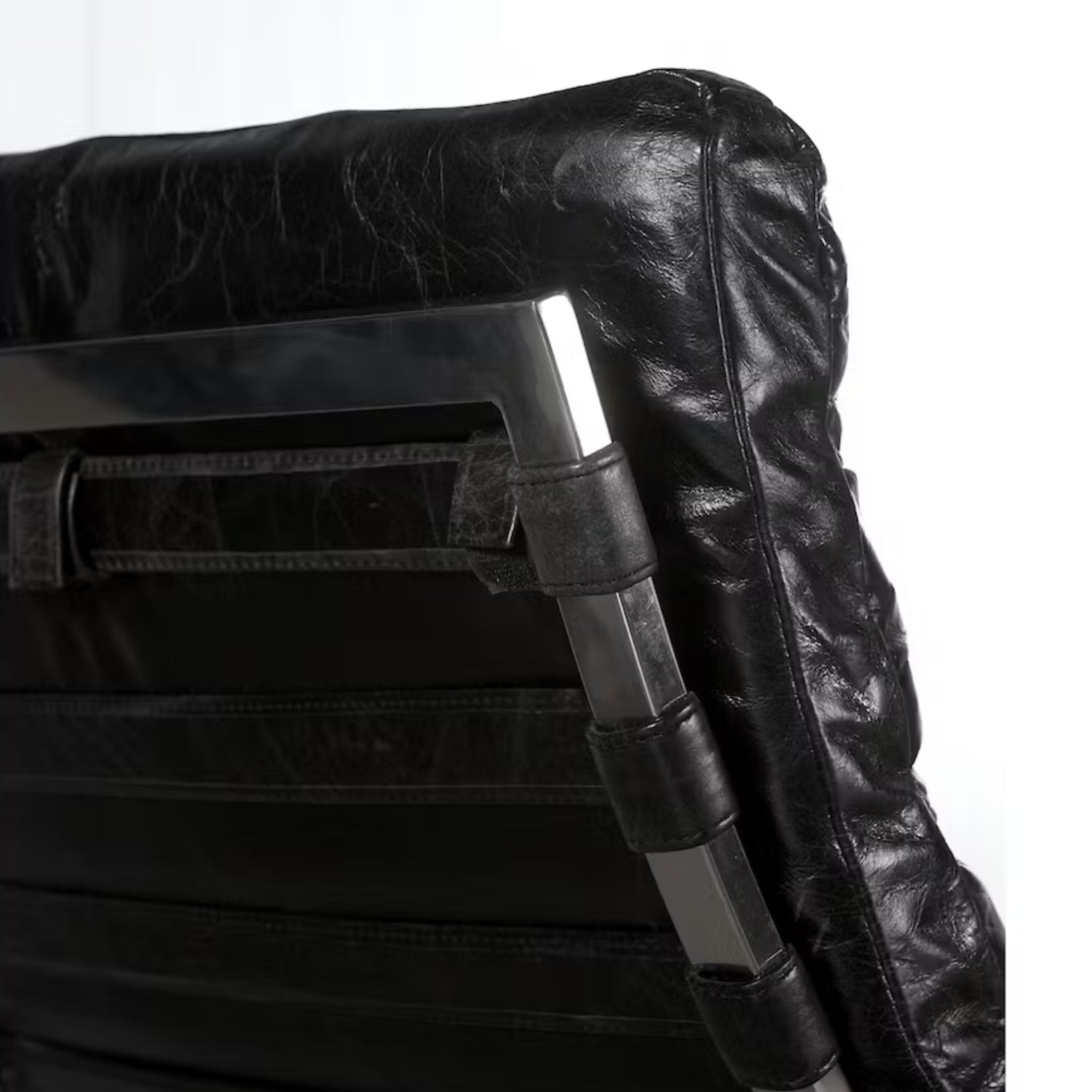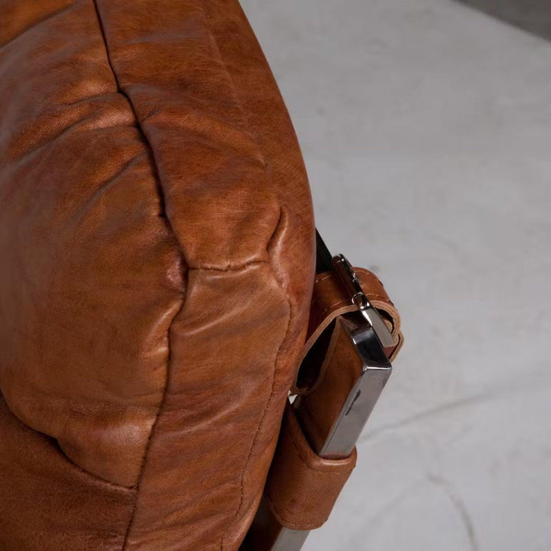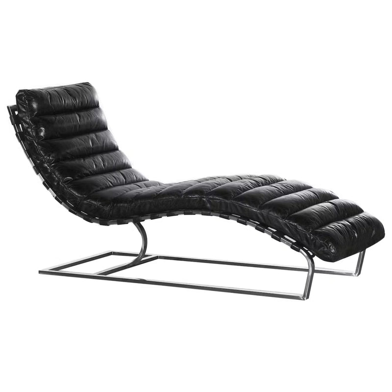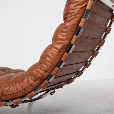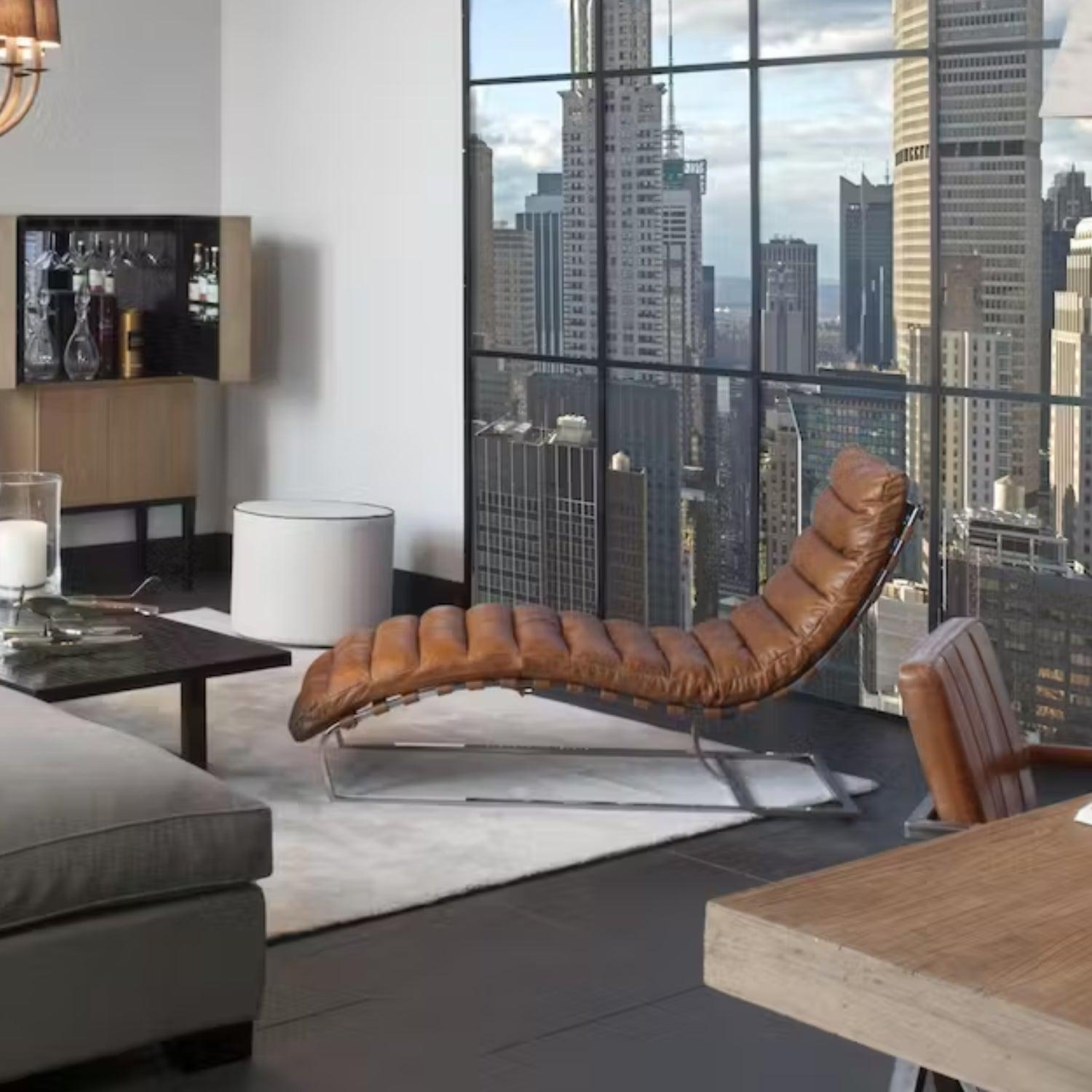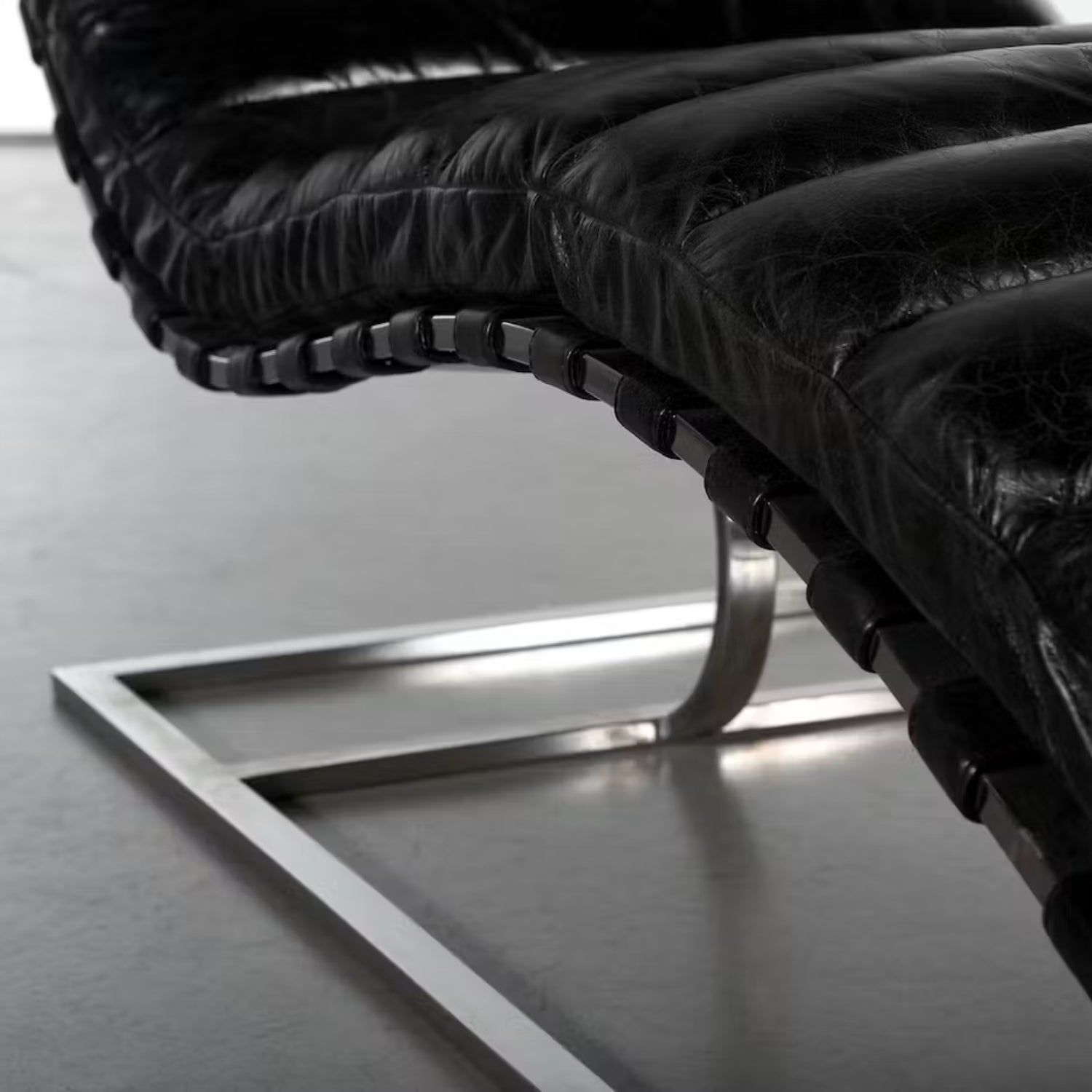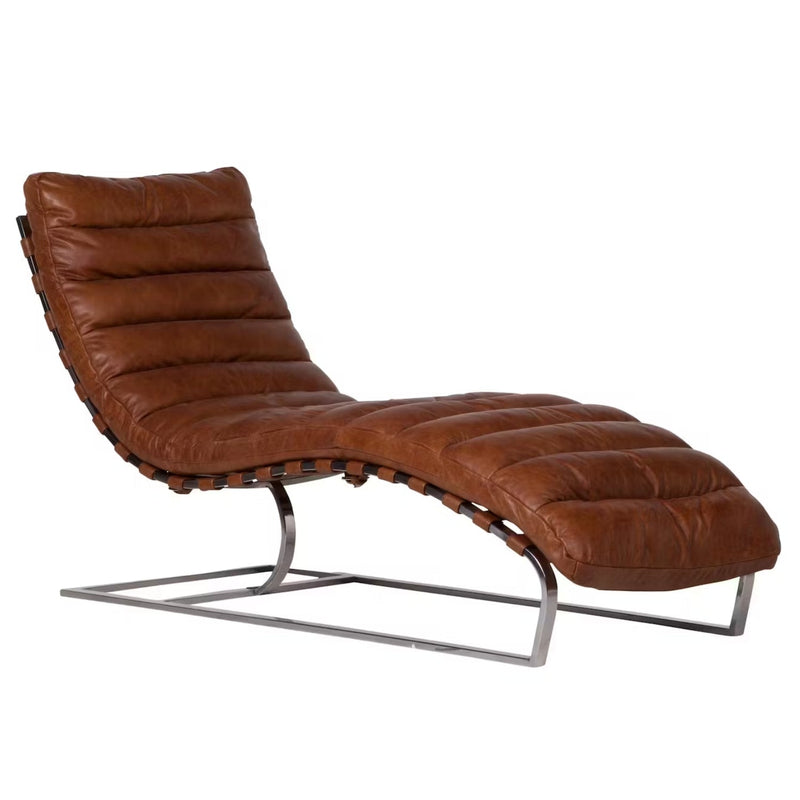 Diese luxuriöse Liege Mason von Flamant ist so bequem wie elegant und ein echter Blickfang. Inspiriert von modernen Stücken aus der Mitte des letzten Jahrhunderts bietet dieser Sessel ein leicht geschwungenes Design in zeitlosen Materialien wie hochwertigem Leder und glänzendem Edelstahl. Das Stahlgestell ist mit Leder überzogen, dessen üppige Farbe ein Vintage-Finish erhalten hat. Der Lederpolster ist auf raffinierte Weise mit Riemen befestigt. Das lädt zu einem gemütlichen Abend ein!
