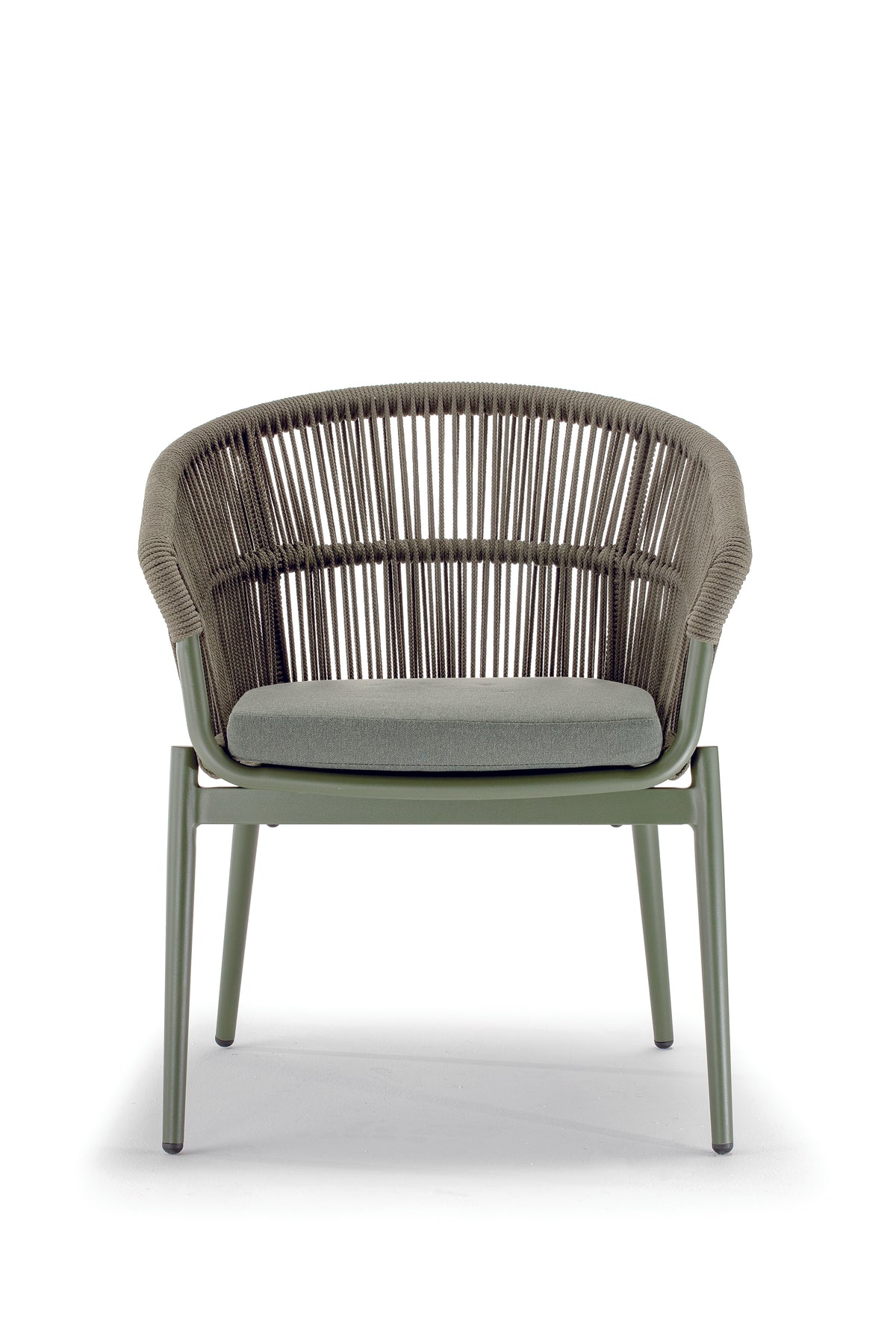 Der Grattoni Tropea Armchair in Grün oder Anthrazit lässt sich perfekt mit neutralen Tönen wie Beige, Weiß oder Holzfarben kombinieren. Dunkle Akzente mit Schwarz oder Anthrazit unterstreichen den modernen Stil.