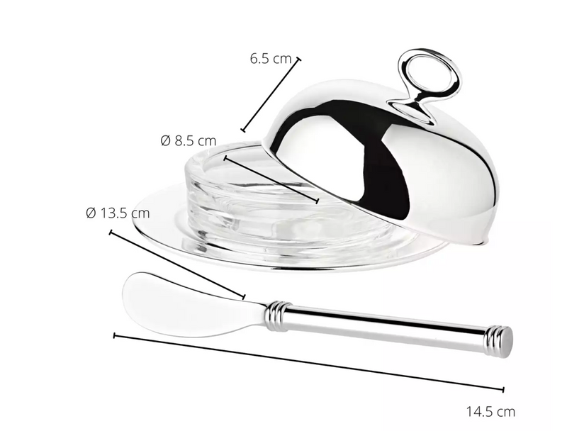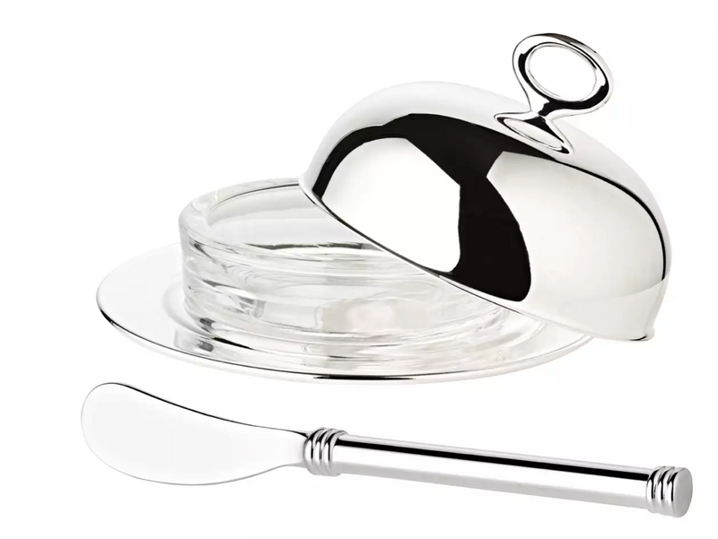 Edzard Butterglocke Jago (130 g Butter), edel versilbert, mit Glasschale & Buttermesser