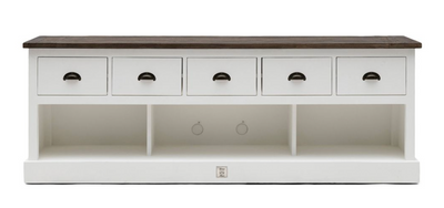 De Riviera Maison Newport Collection kombinerer klassisk landstedstil med moderne, tidløse accenter. Møblerne imponerer med deres klare linjer, hvide lig og mørke træpaneler, som giver dem en elegant vintage charme. Hvert møbel er afrundet af sorte muslinghåndtag på skufferne, som understreger landdistrikterne og giver møblerne en autentisk karakter.