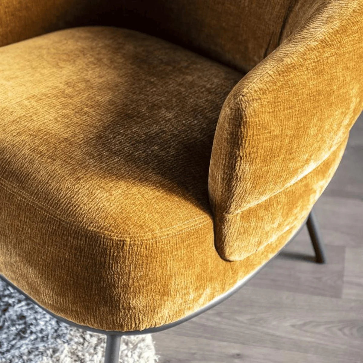 Armchair David fra Eleonora Collection er et rigtigt stykke luksus og stil. Lænestolen er beregnet til at slappe af og polstret med blød polyester. De moderne Black Metal -ben giver David et moderne look og tilbyder et solidt grundlag. Med et udvalg af smukke farver i sennep, taupe og beige kan du perfekt tilpasse denne lænestol til din personlige smag og møbler.