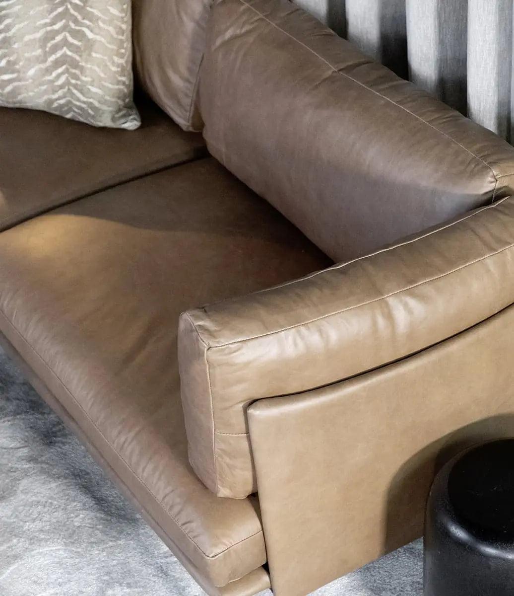Artwood lædersofa i naturligt vasket sand er en moderne og stilfuld 3-personers sofa med et sofistikeret design. Det overordnede design af lædersofaen med polstret ryg gør det muligt at placere sofaen midt i rummet.