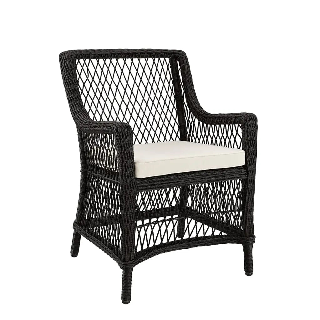 Η τραπεζαρία Marbella στο χρώμα Black Twist προσφέρει μια παραδοσιακή και κλασική εμφάνιση. Αυτό το μοντέλο είναι απίστευτα διαχρονικό και ταιριάζει σε πολλά διαφορετικά περιβάλλοντα και στυλ. Η Marbella είναι μια τραπεζαρία με χέρια από έγχρωμο συνθετικό μπαστούνι από πολυαιθυλένιο, στο οποίο το σταθερό πλαίσιο αλουμινίου είναι κατασκευασμένο από αλουμίνιο.