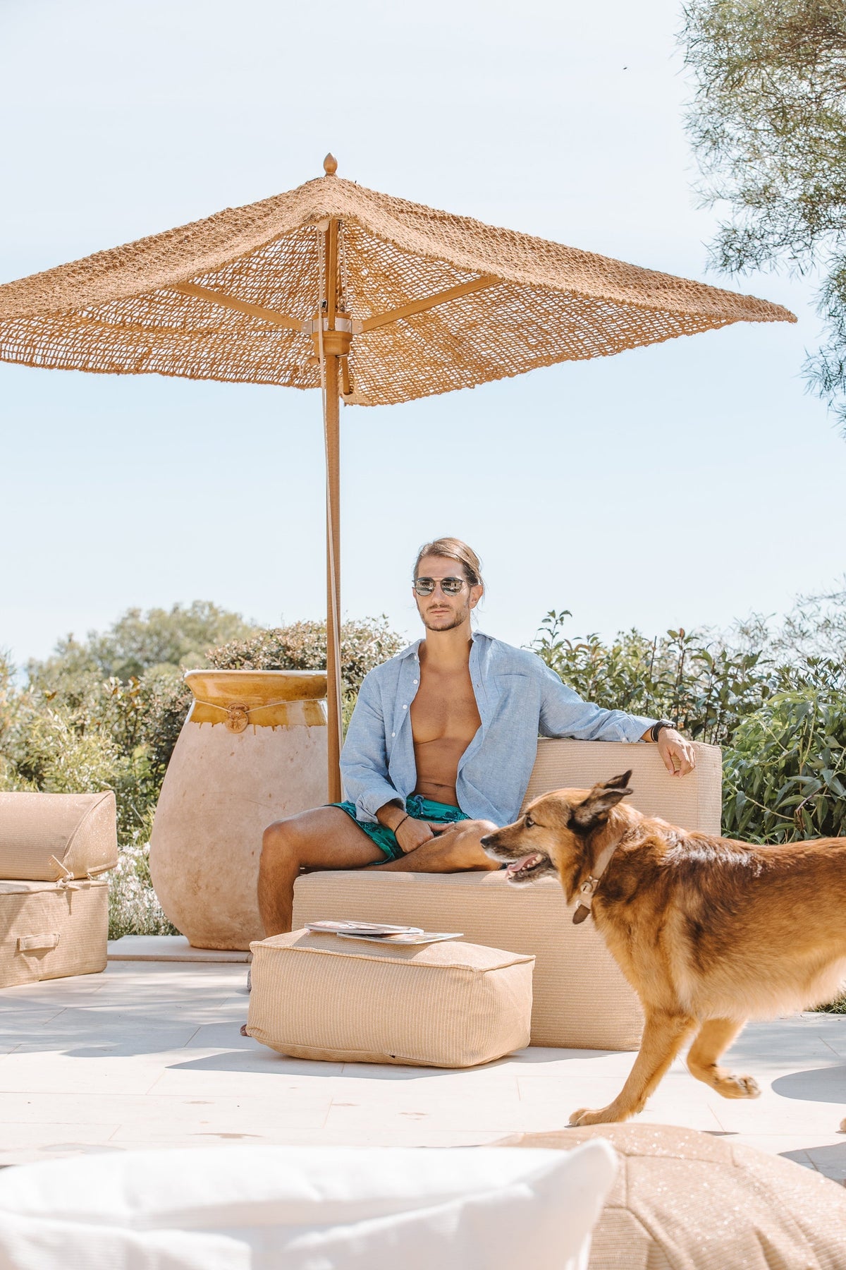 Φέρτε με το Υπαίθρια chauffeuse σε μπεζ με εφέ Raphia Ένα άγγιγμα φυσικότητας και μποέμιας αίσθησης στην υπαίθρια περιοχή σας. Το εμπνευσμένο σας Σχεδίαση boho Αναμειγνύεται αρμονικά σε οποιοδήποτε σχέδιο κήπου ή βεράντας και δημιουργεί μια ζεστή, φιλόξενη ατμόσφαιρα.