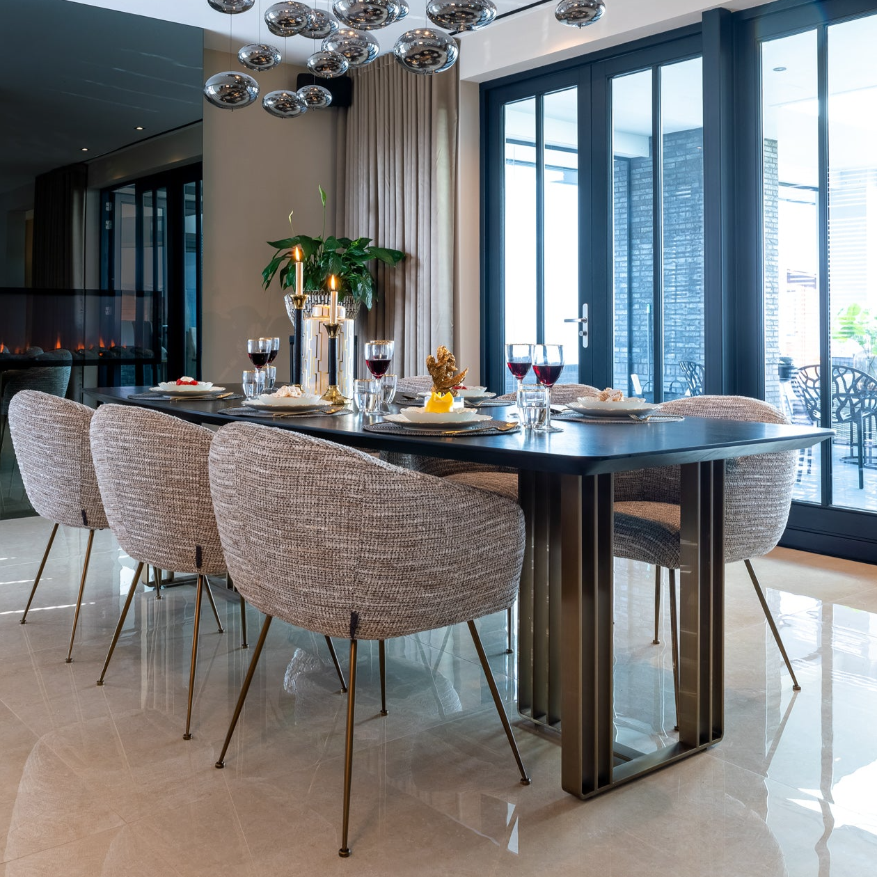 With the Amalfi chair by Alexander Jones you bring sophisticated elegance into your dining room. The mixed fabric in beige coco in combination with the gold -colored stainless steel legs gives the Amalfi chair a carefree character. Comfortable eating or working is a matter of course with the Amalfi chair in a stylish environment.