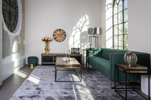 The Richmond Interiors Calloway table collection captivates with its metallic table tops with a slightly glossy surface and minimalist, black metal frame. The clear, geometric lines ensure a timeless and modern design that can be perfectly integrated into different living rooms.