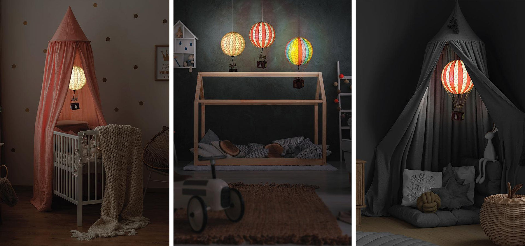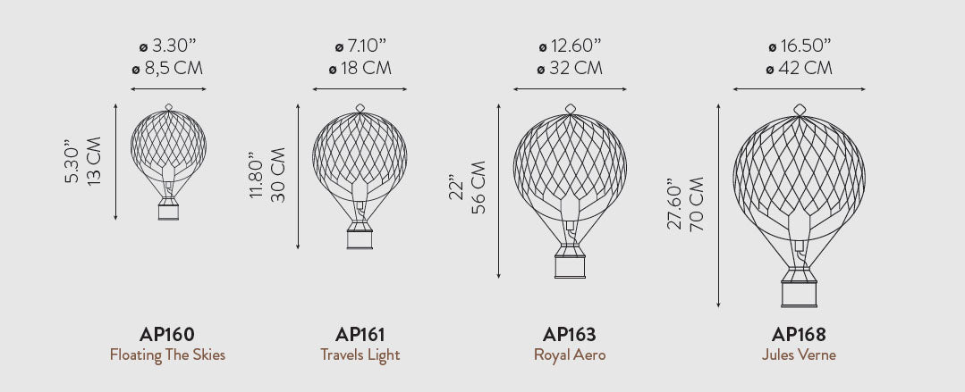 The Authentic Models Jules Verne LED hot air balloon in blue can be combined wonderfully with neutral tones such as white, gray or pastel tones. Light furniture and natural materials go perfectly with outdoor decorations.