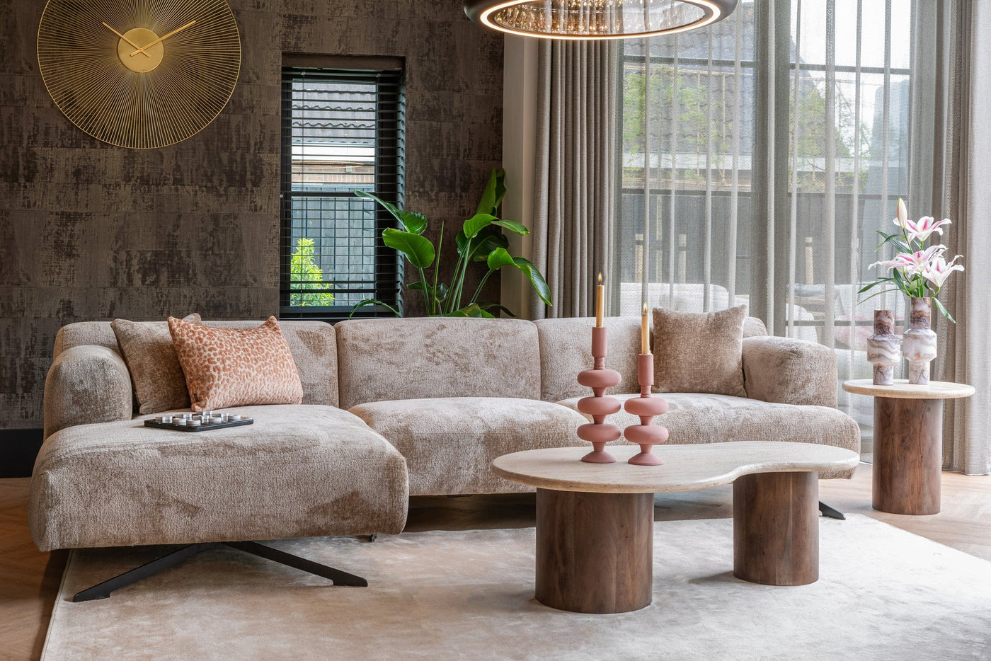 La sofkollection de Donovan de Richmond Interiors Combina el diseño y la comodidad modernos. Elija entre colores elegantes como crema y tope y diseñe su espacio vital elegante. El diseño ligero y minimalista es ideal para interiores modernos y se puede combinar de muchas maneras.