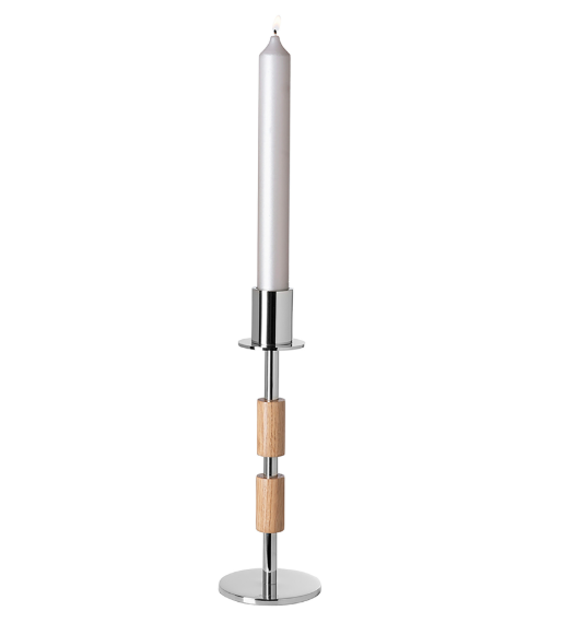 El Candelabro En marrón y plata brillante, un elegante accesorio para el hogar está hecho de materiales de alta calidad. Hecho de roble, aluminio y acero inoxidable con una superficie de níquel, impresiona con un diseño noble y una altura de 28 cm. Con un diámetro de 9 cm, es perfecto para pegar velas con un diámetro de 3 cm y establece acentos de iluminación elegantes.