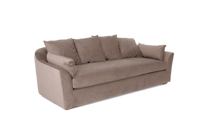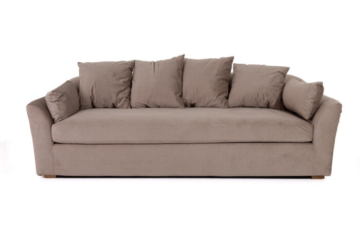 esto Flamant sofá MICHELÉ convence por su elegante combinación de lujosa comodidad, forma curvada y acabado de alta calidad. Con sus reposabrazos suavemente redondeados, su suave funda textil y los seis cojines decorativos incluidos, invita a relajarse. Las generosas dimensiones (250 cm de largo, 110 cm de fondo) y el asiento particularmente profundo de 86 cm lo convierten en el refugio ideal para largas veladas. Está disponible en todos Flamant-Tejido y con pies de roble macizo en diferentes diseños: el sofá MICHELE se adapta perfectamente a diferentes estilos de hogar. Una pieza llamativa de alta calidad para espacios habitables sofisticados.
