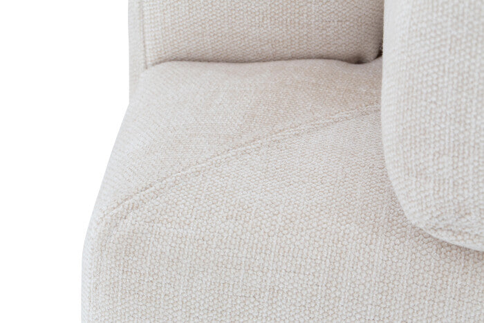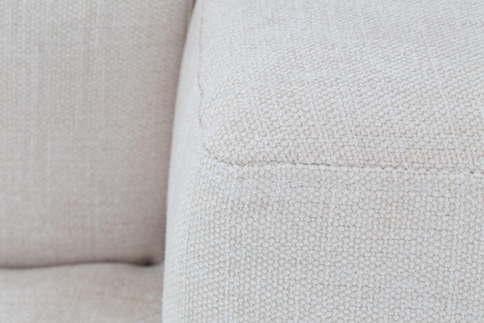 El sofá claro, casi de color marfil, armoniza idealmente con colores suaves como el salvia, el gris claro o el rubor. Los tonos negros, antracita o azules apagados crean contrastes claros. Los cálidos tonos de madera, el latón y el vidrio complementan el diseño minimalista de forma especialmente elegante.