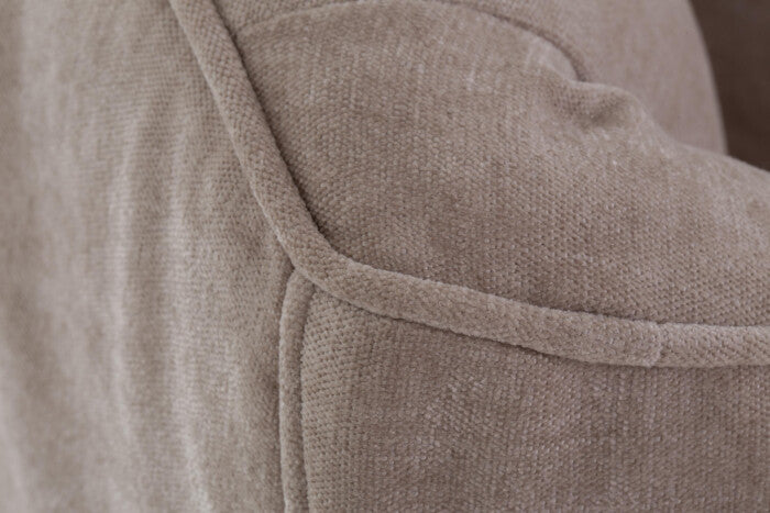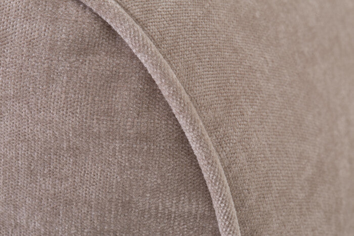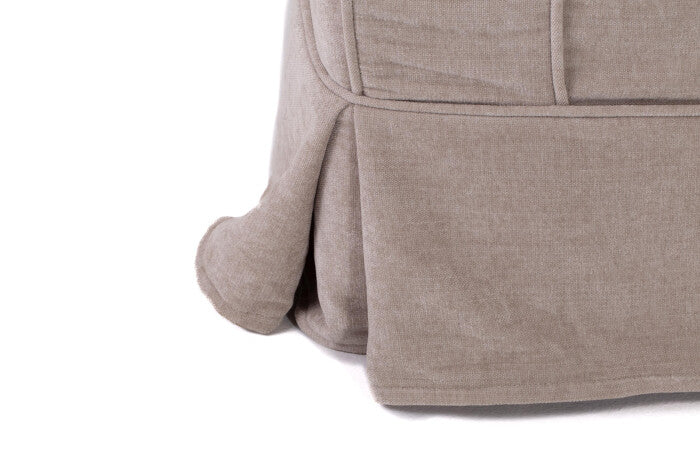 Curvas suaves, pliegues clásicos, asiento de perfil bajo, diseño a ras de suelo con revestimiento de tela, acogedor y elegante.