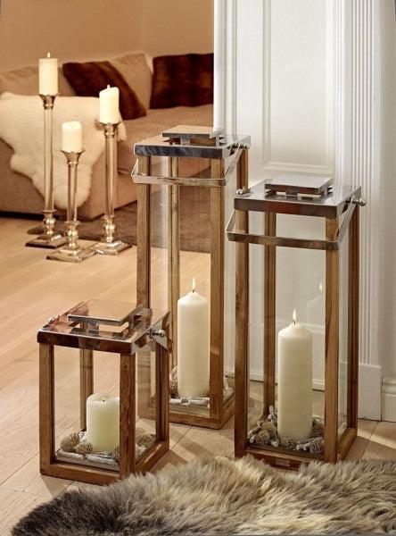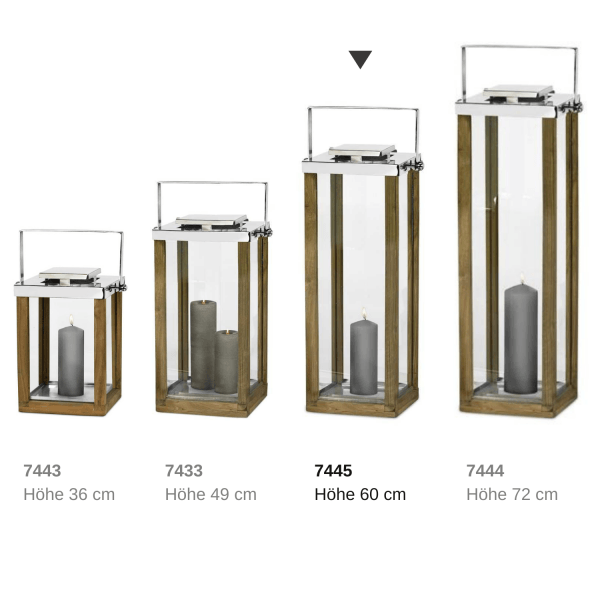 Edzard Linterna de linterna de Miami con mango plegable, madera y acero inoxidable altura brillante 60 cm