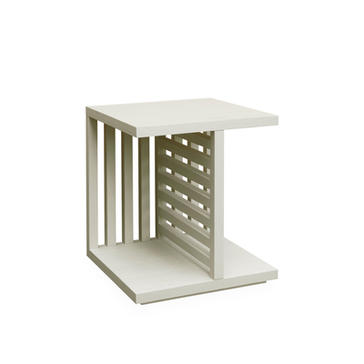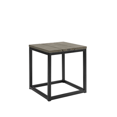 La mesa lateral de Maddox se convence con una elegante combinación de chapa de roble y elementos metálicos.