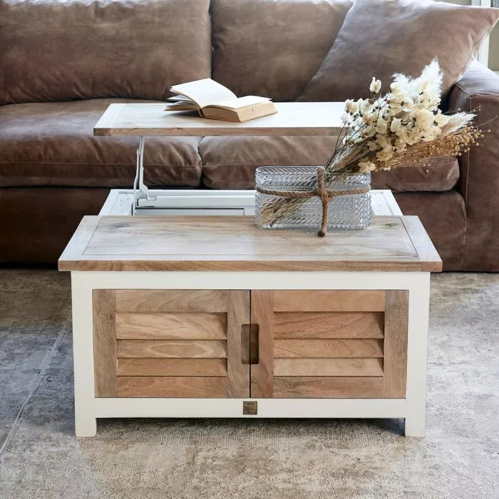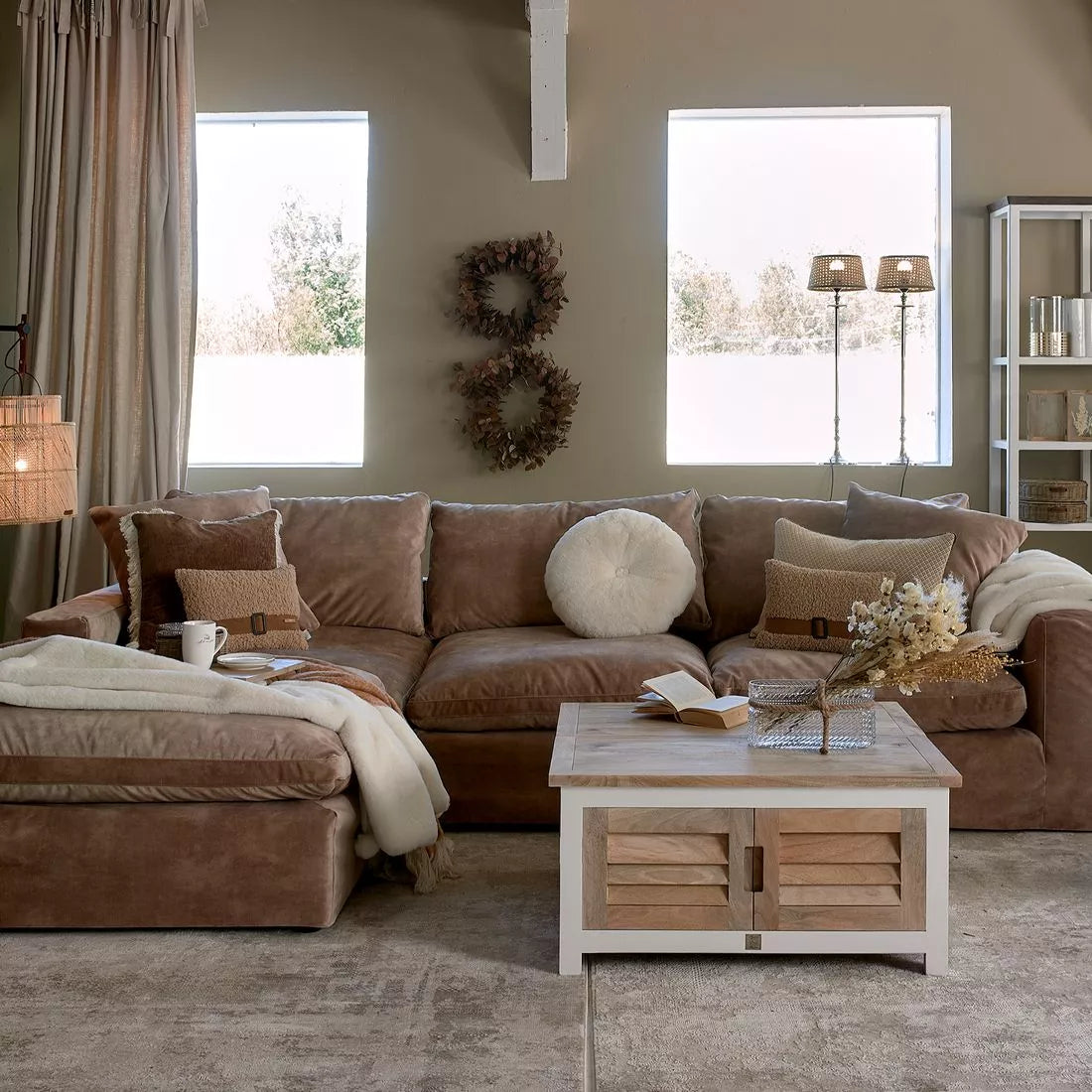 El "Pacifica" Table de Salon de Riviera Maison Es una verdadera pieza de joyería para cada sala de estar. Hecho de madera de mango natural en diferentes colores, cada mesa ofrece un aspecto único. Esta plaza Table de Salon Mide 90 x 90 cm y tiene una altura de 45 cm, ideal para noches acogedoras con bocadillos y bebidas o para trabajar con la computadora portátil. Una característica especial es la mesa que se puede empujar hacia arriba, que ofrece funcionalidad adicional. El uso de materiales basados en bio subraya el concepto sostenible. Cada mesa está hecha a mano y está encantada con su cálido tono blanco y su acogedor carisma.