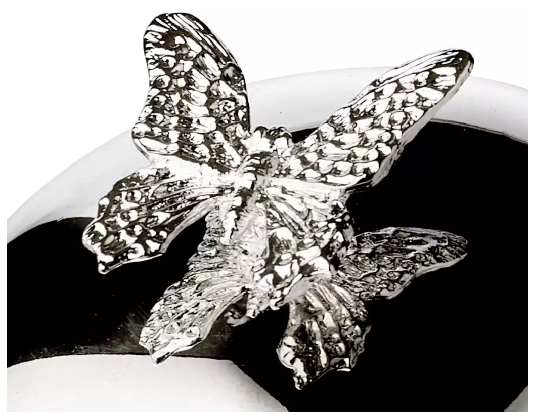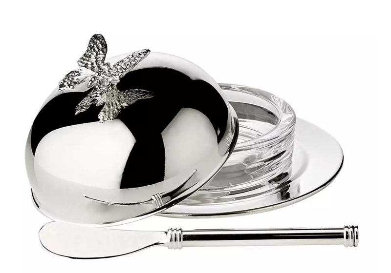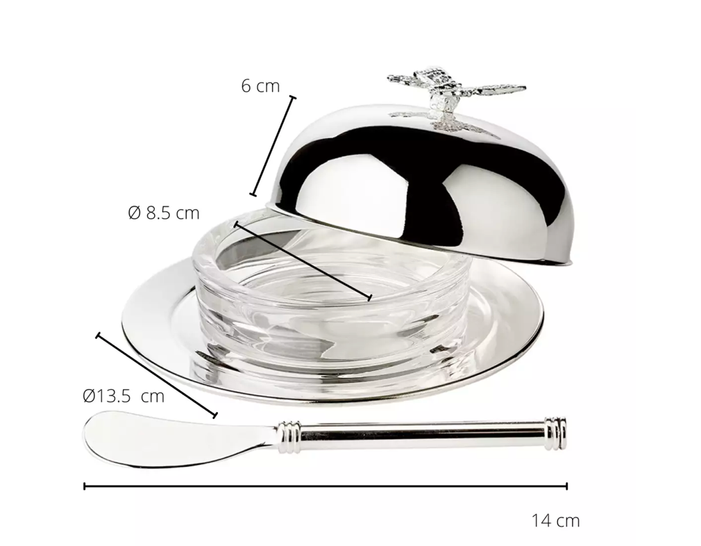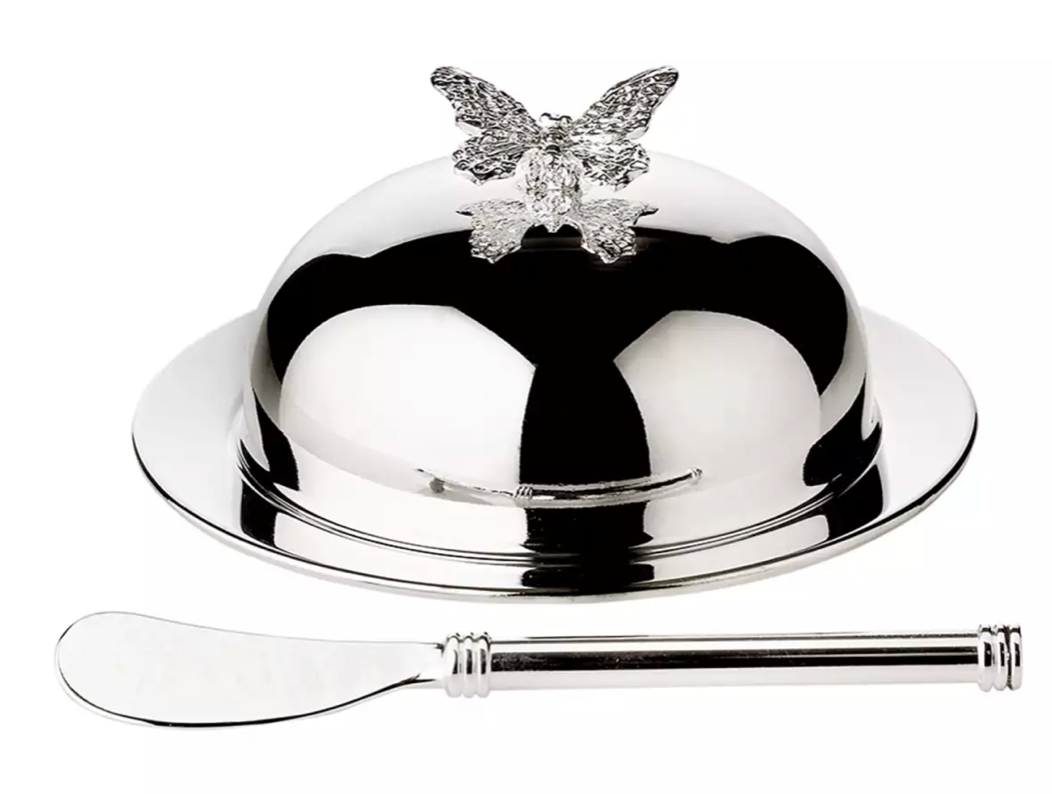Edzard Butterbell Butterfly (130 g de mantequilla), figura de mariposa, plateado noble, con tazón de vidrio y cuchillo