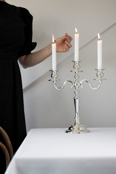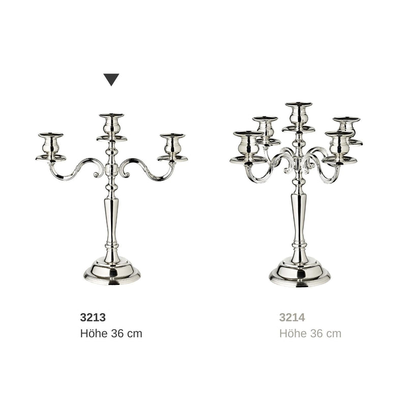 Kerzenleuchter Regina (Höhe 36 cm), edel versilbert, anlaufgeschützt, für 3 Stabkerzen-4262466871532-Stil-Ambiente-3213