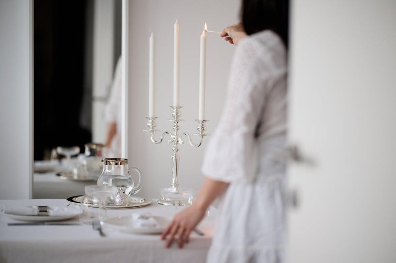 Experimente un ambiente elegante con el candzard Candlestick Regina, una pieza de diseño de tres brazos plateada magistralmente plateada que inmediatamente convierte su habitación en una mesa elegante. Con una altura de 37 cm y alojamiento para un brillo duradero, este noble candelabro es un símbolo de calidad premium y diseño atemporal. Perfecto para velas de palo, Regina establece acentos elegantes en cada habitación, ya sea en la mesa festiva o en el aparador.