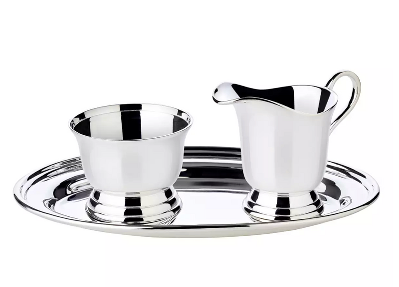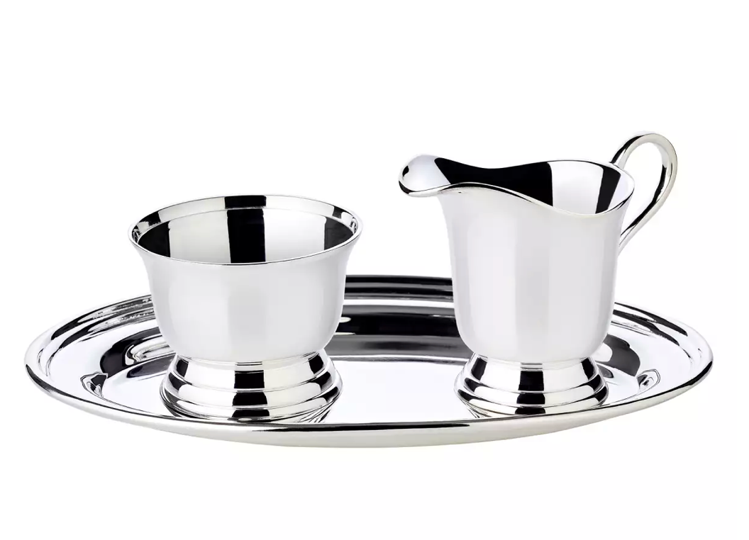 Edzard Cispage Service Jersey 3 piezas, plateado de mucama (lata de azúcar, base de crema, tableta de servicio)