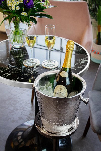 Edzard Capri Sektkühler Weinkühler mit Ständer, Edelstahl hochglanzpoliert, außen gemustert-Edzard-7243Silber-Stil-Ambiente