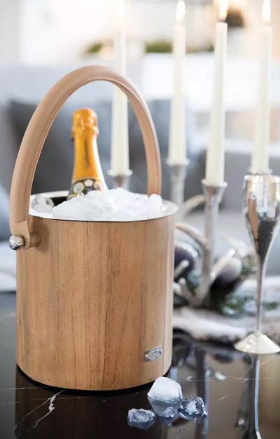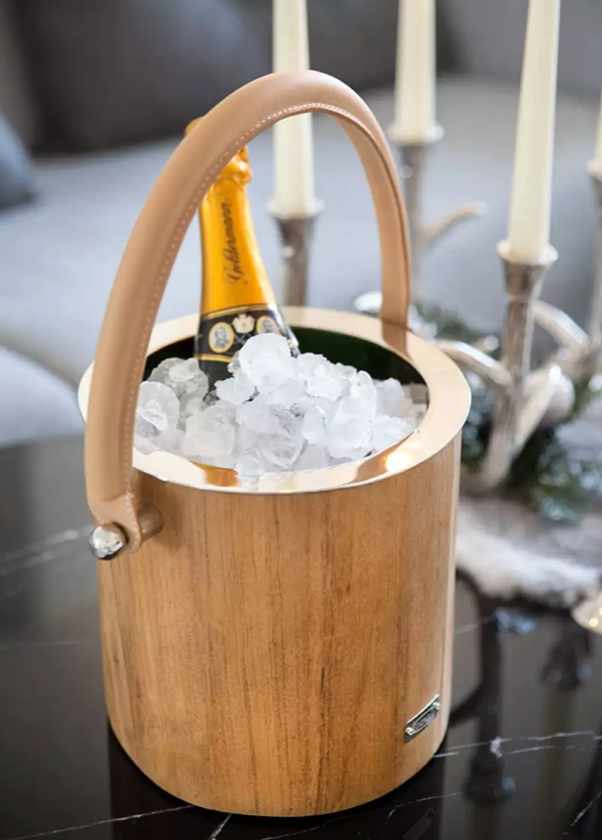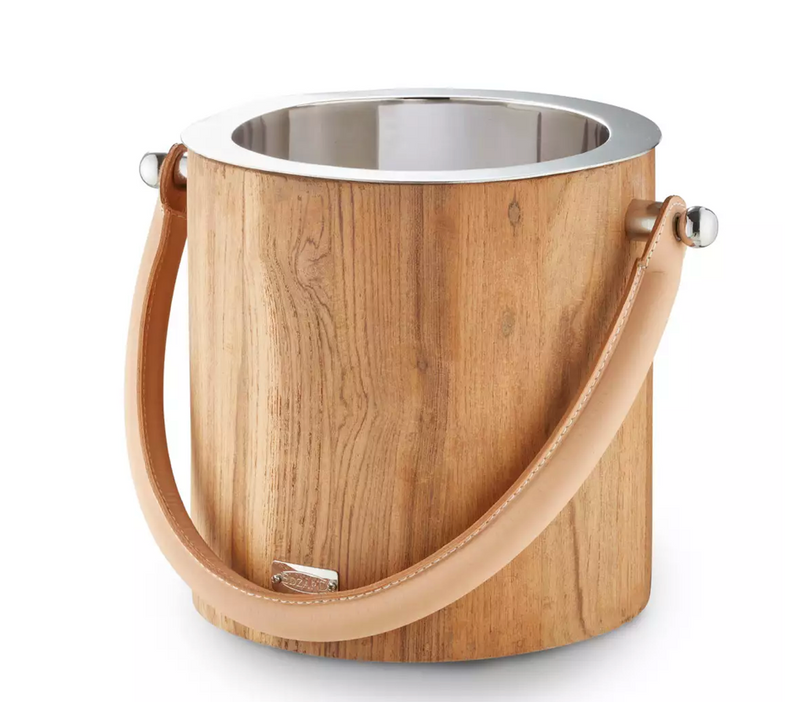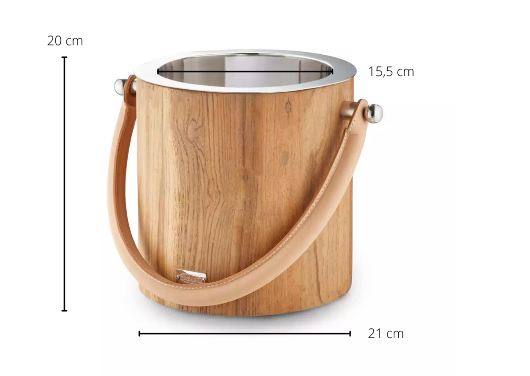 Edzard Havana de cubierta de hielo (altura de 20 cm), mango de cuero, teca exterior, acero inoxidable, níquel brillante