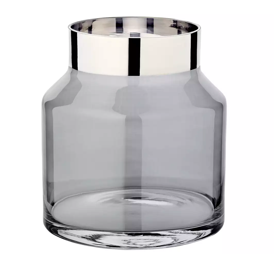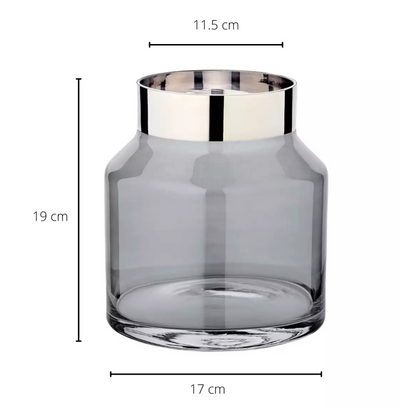 Edzard Jarrón Gabi (altura de 19 cm, Ø 17 cm), vidrio de cristal oscuro desagradable con borde de platino