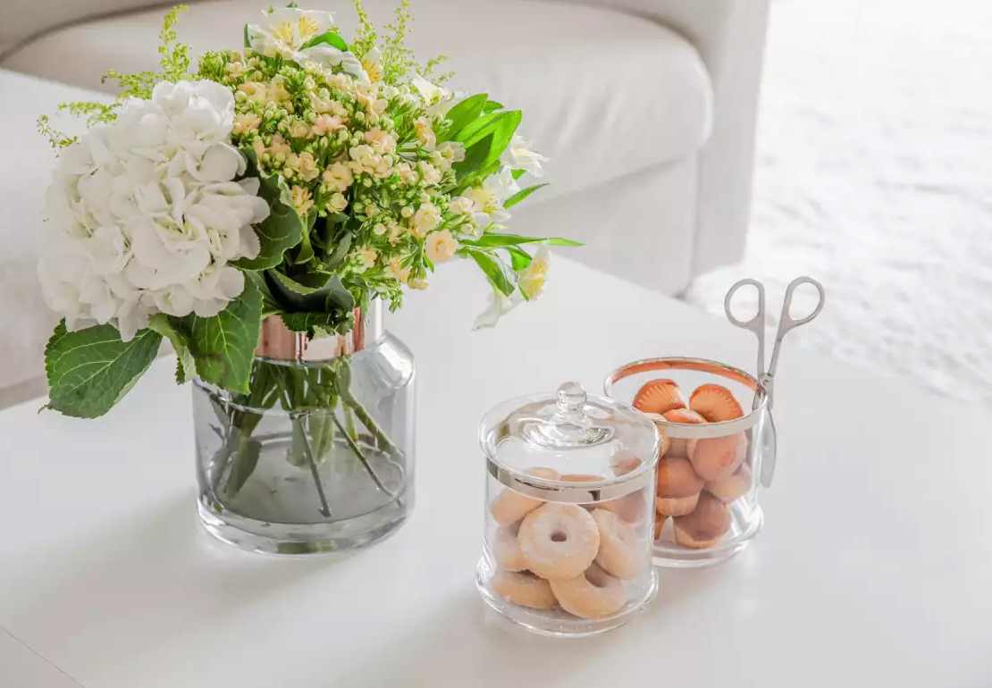 ✓ Materiales exquisitos: Nuestro jarrón se crea hecho de cristal de alta calidad y de cristal robusto, redondeado con un borde platino plegado, se convierte en una pieza interior absoluta