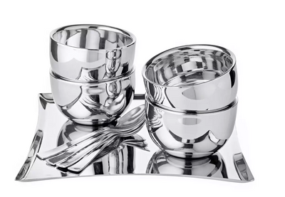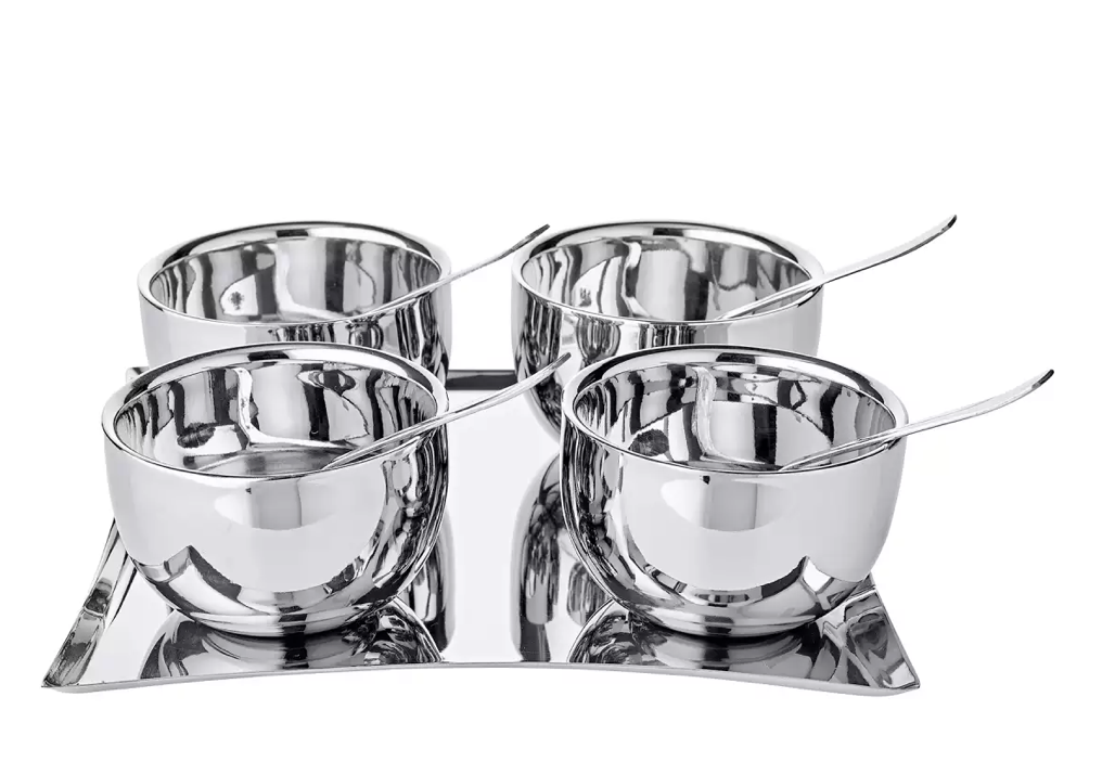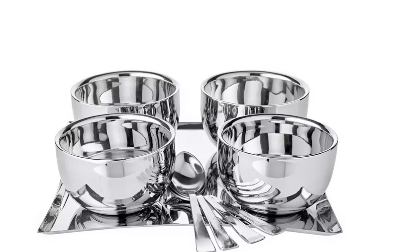 Edzard Eiscreme-Set Madeleine (20 x 20 cm), inkl.Tablett, doppelwandig, hochglanzpoliert, Edelstahl-Stil-Ambiente-8706