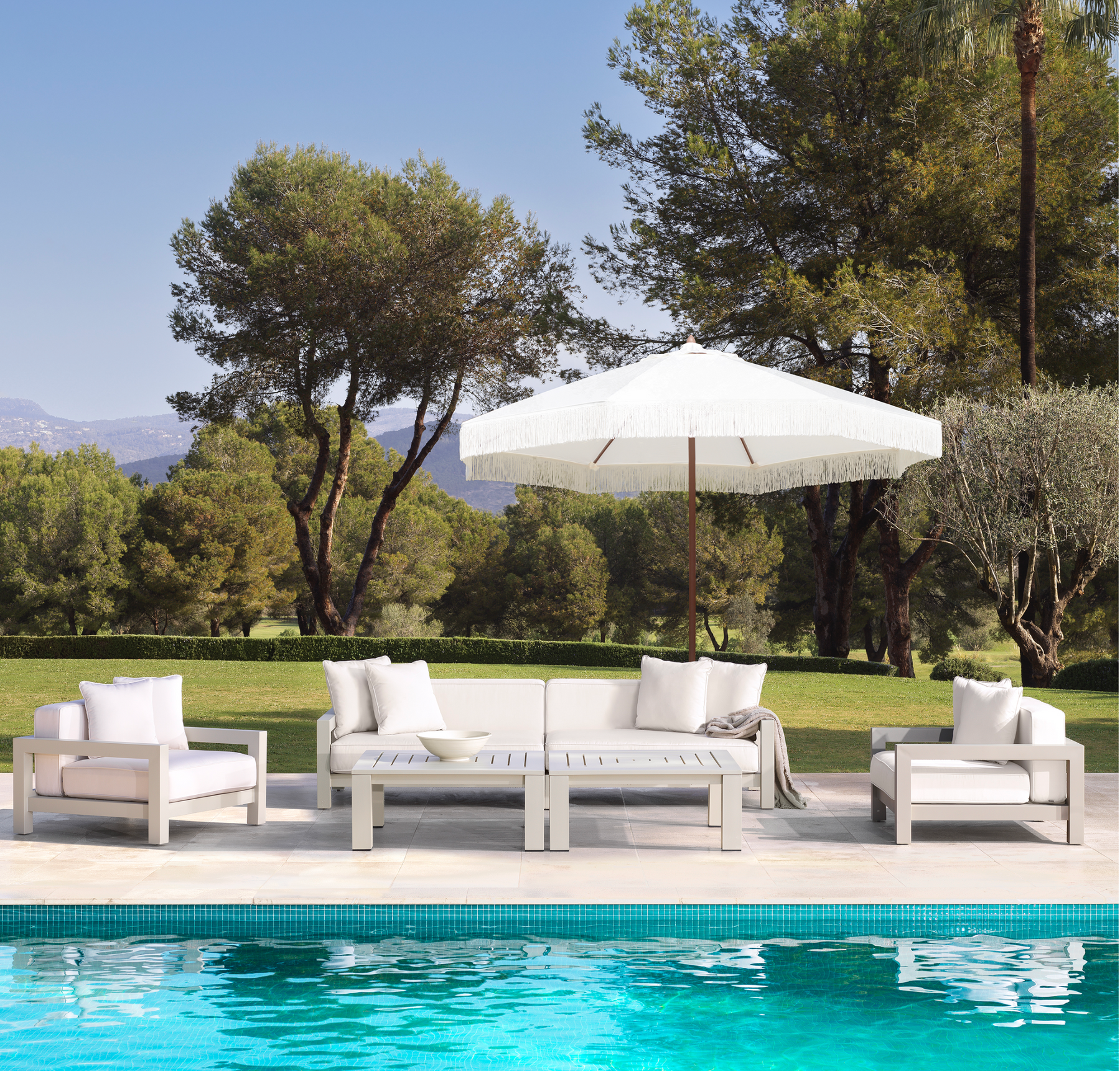 - Material y color: aluminio con bobina de polvo de arena y tapicería de lona para el sol