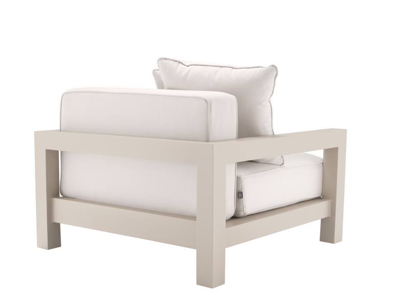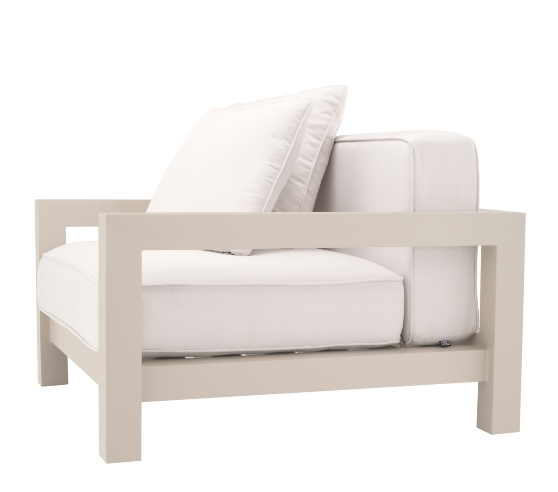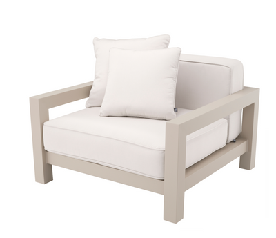 La gorra del sillón al aire libre se caracteriza por su diseño delgado con líneas transparentes y le da su estilo contemporáneo de área al aire libre. Este lujoso sofá está hecho de aluminio duradero y se le proporciona una bobina de polvo con color arena.