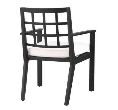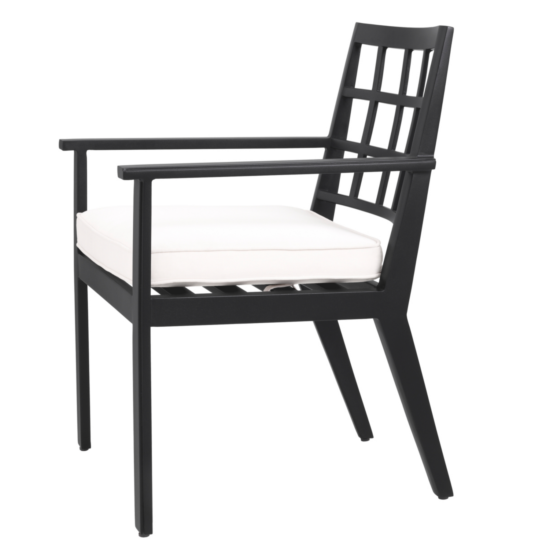 La tapa del comedor Ferrat es una silla al aire libre con el estilo y el encanto de una silla interior. Brillante con lujo y de alto estilo, esta hermosa silla con una superficie negra y reposabrazos se destacará en su comedor al aire libre.