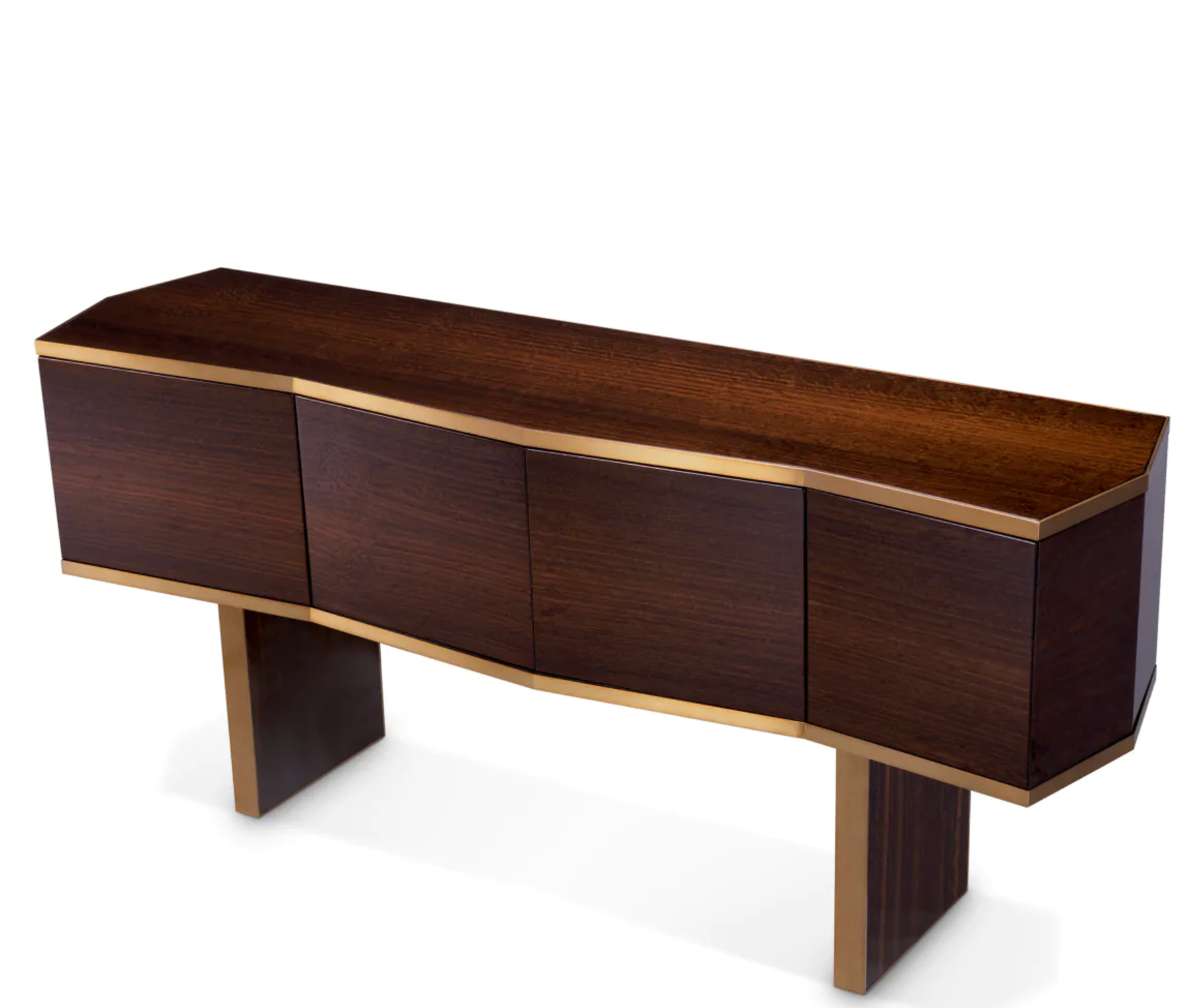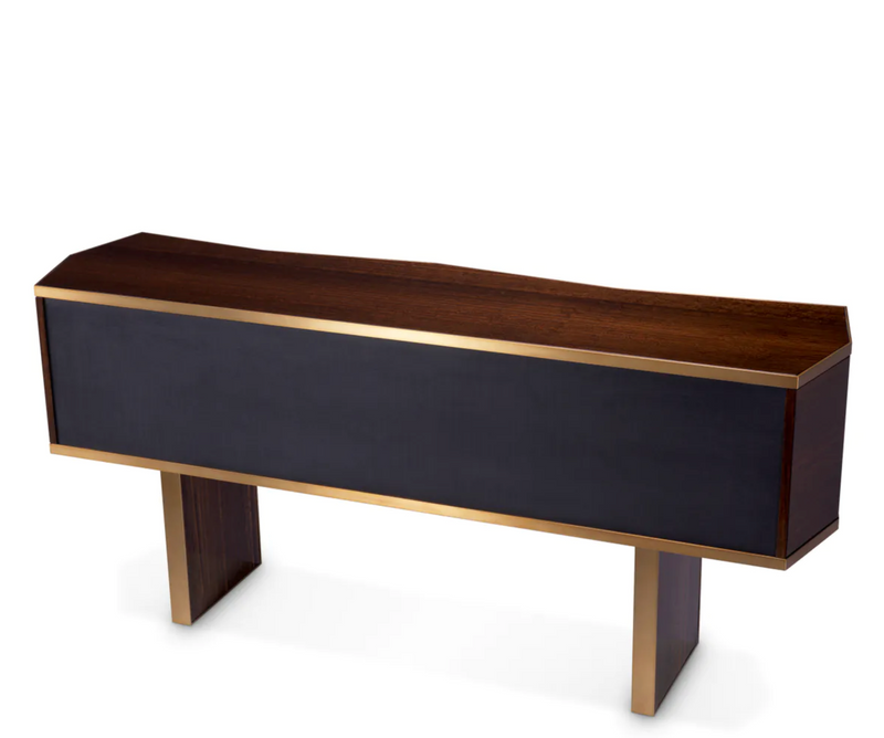 El Eichholtz Casa de cajones Xenon Convierte su hogar en un refugio de lujo real. La chapa de eucalipto de alto brillo ahumada le da al vestido un carisma majestuoso, mientras que la superficie de latón cepillada agrega un toque de grandeza. Con un ancho de 180.5 cm, una profundidad de 46 cm y una altura de 80 cm, este vestido no solo ofrece un estímulo visual impresionante, sino también un espacio de almacenamiento práctico para sus objetos personales.