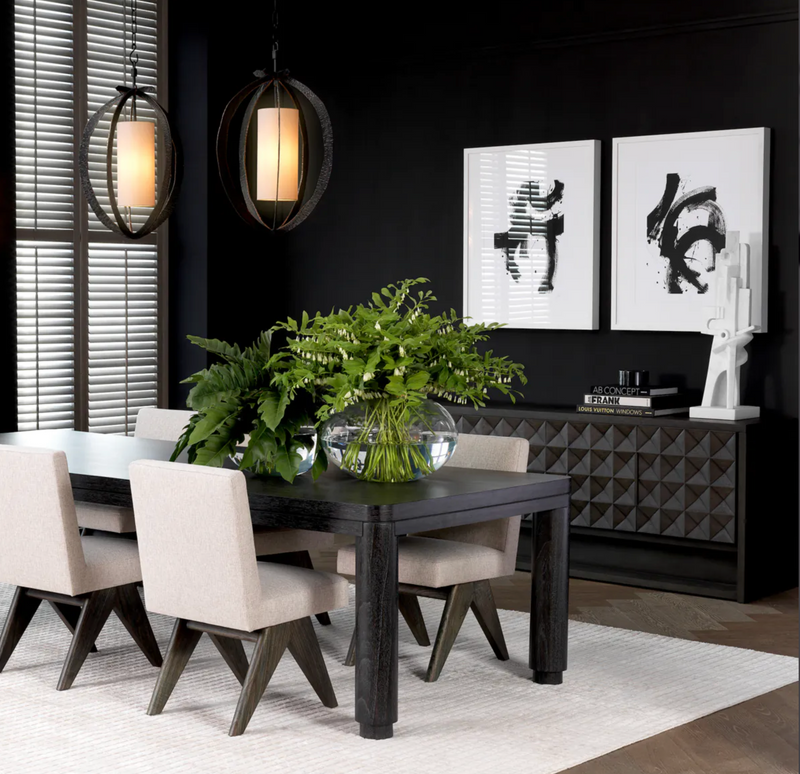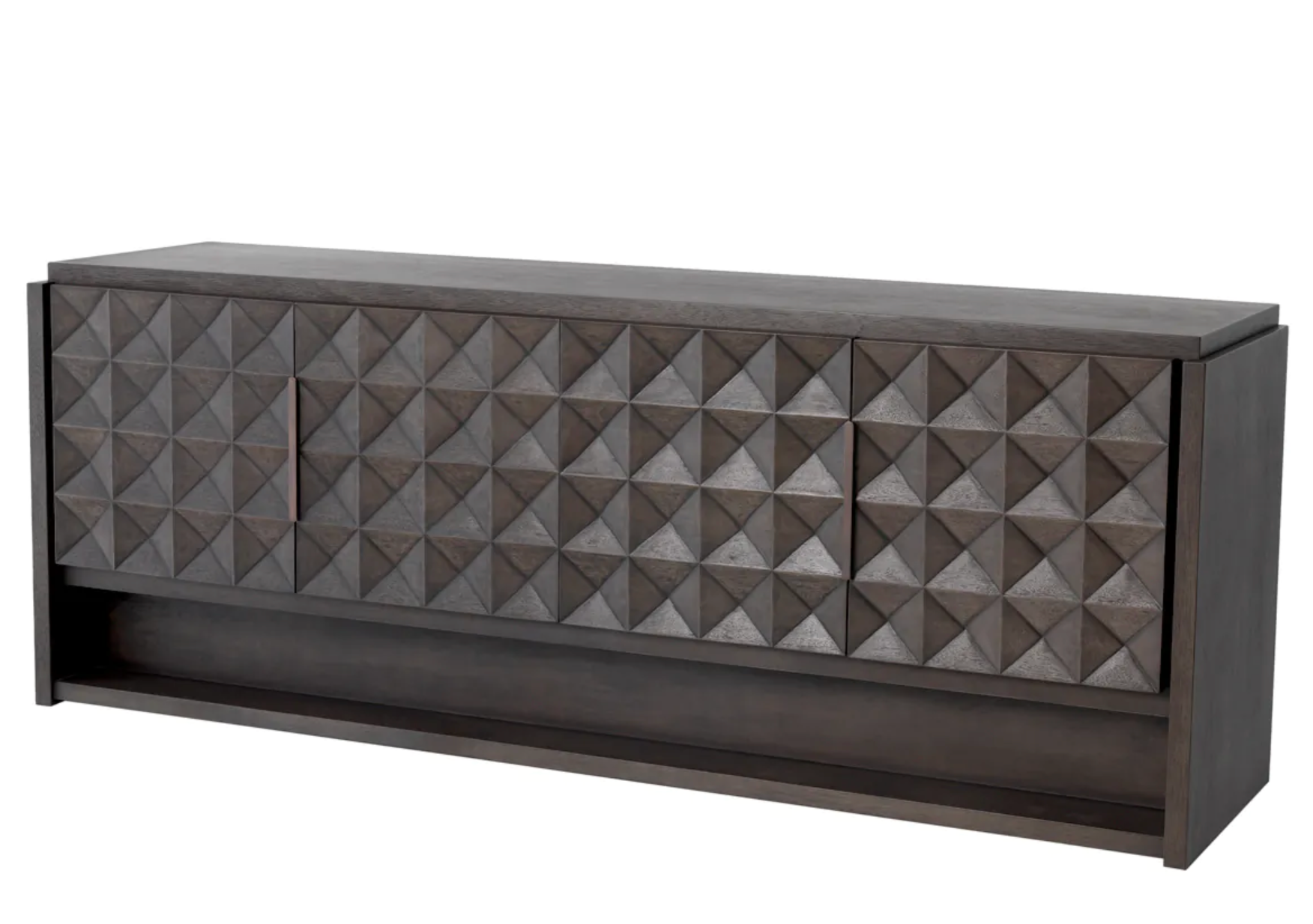 El Eichholtz La cómoda Jane L le da a su casa con su hermoso trabajo de incrustaciones y las manijas hechas de latón antiguo son un encanto moderno pero atemporal. Hecho de moca meranti con un acabado de bronce mediano, este aderezo no solo ofrece un diseño elegante, sino también un espacio de almacenamiento práctico. Los patrones geométricos hechos de madera meranti sólida en los paneles de la puerta crean un impresionante efecto 3D que le da a este mueble una nota única.