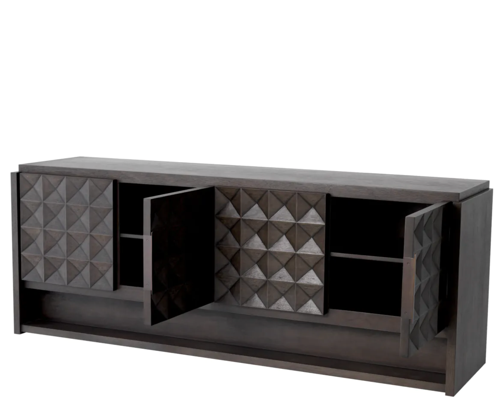 - Diseño y estilo: La cómoda Jane L le da a su interior su hermoso trabajo de incrustaciones y las manijas hechas de latón antiguo un encanto moderno pero atemporal. Los patrones geométricos hechos de madera meranti sólida en los paneles de la puerta crean un efecto 3D impresionante.