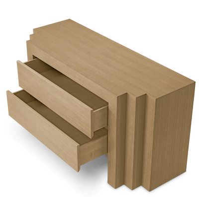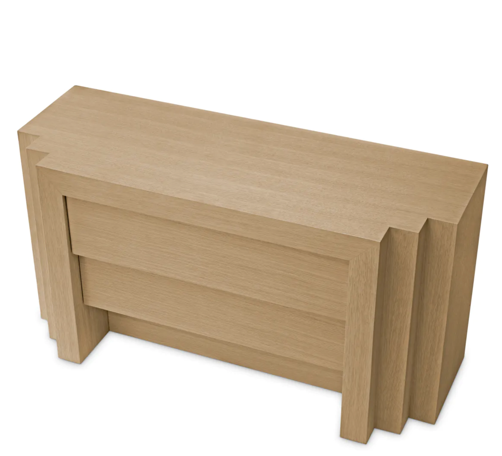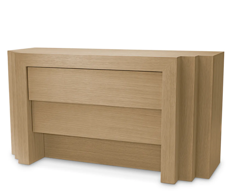 El Eichholtz La cofre de cajones de Mitropolitan, con sus dimensiones de 134.5x50x237 cm y un acabado en una chapa de roble natural, trae el estilo y la grandeza del Museo Met a su hogar.