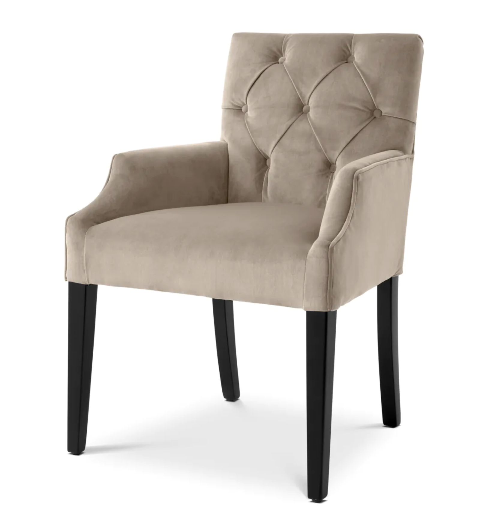 - Material y color: terciopelo Savona Greige (referencia), piernas negras