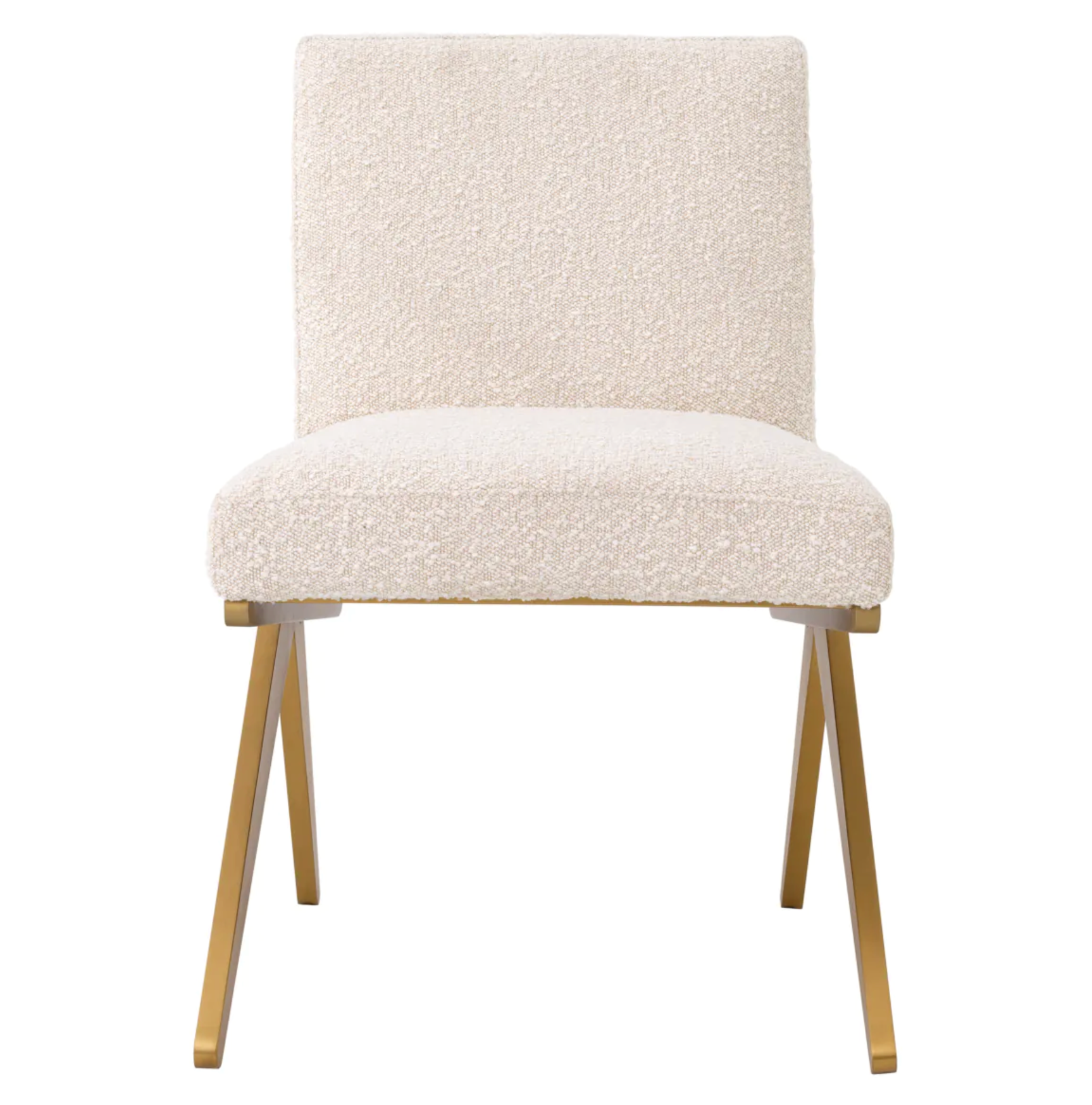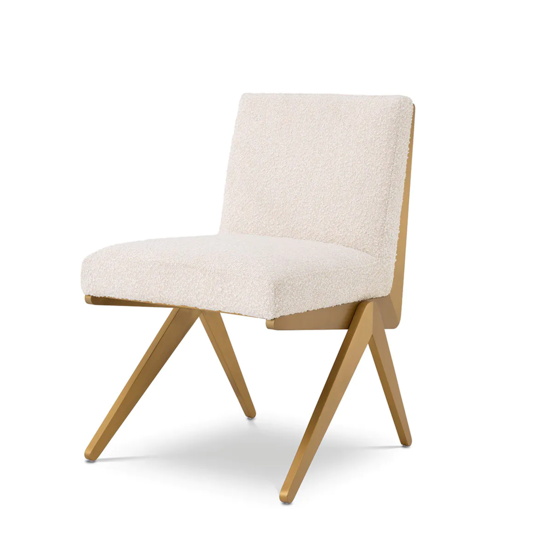 - Material y color: crema bouclé (cubierta), latón cepillado (acabado)
