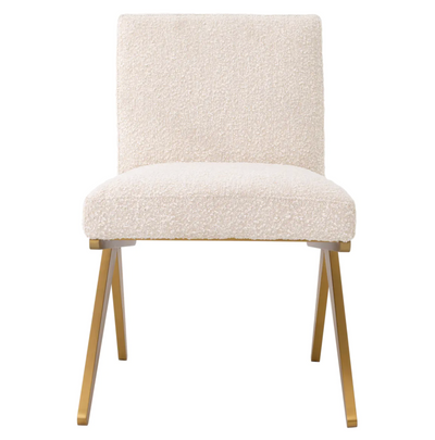 El Eichholtz La silla de comedor FICO combina calidad con simplicidad. Esta elegante silla sin brazos es una interpretación contemporánea de muebles de madera minimalistas de la década de 1950. Con un marco hecho de acabado de latón cepillado y una referencia a Bouclé Cream, ofrece comodidad y estilo para su comedor. Con dimensiones de 54.5x62x80 cm, esta silla es la opción perfecta para la vida moderna.
