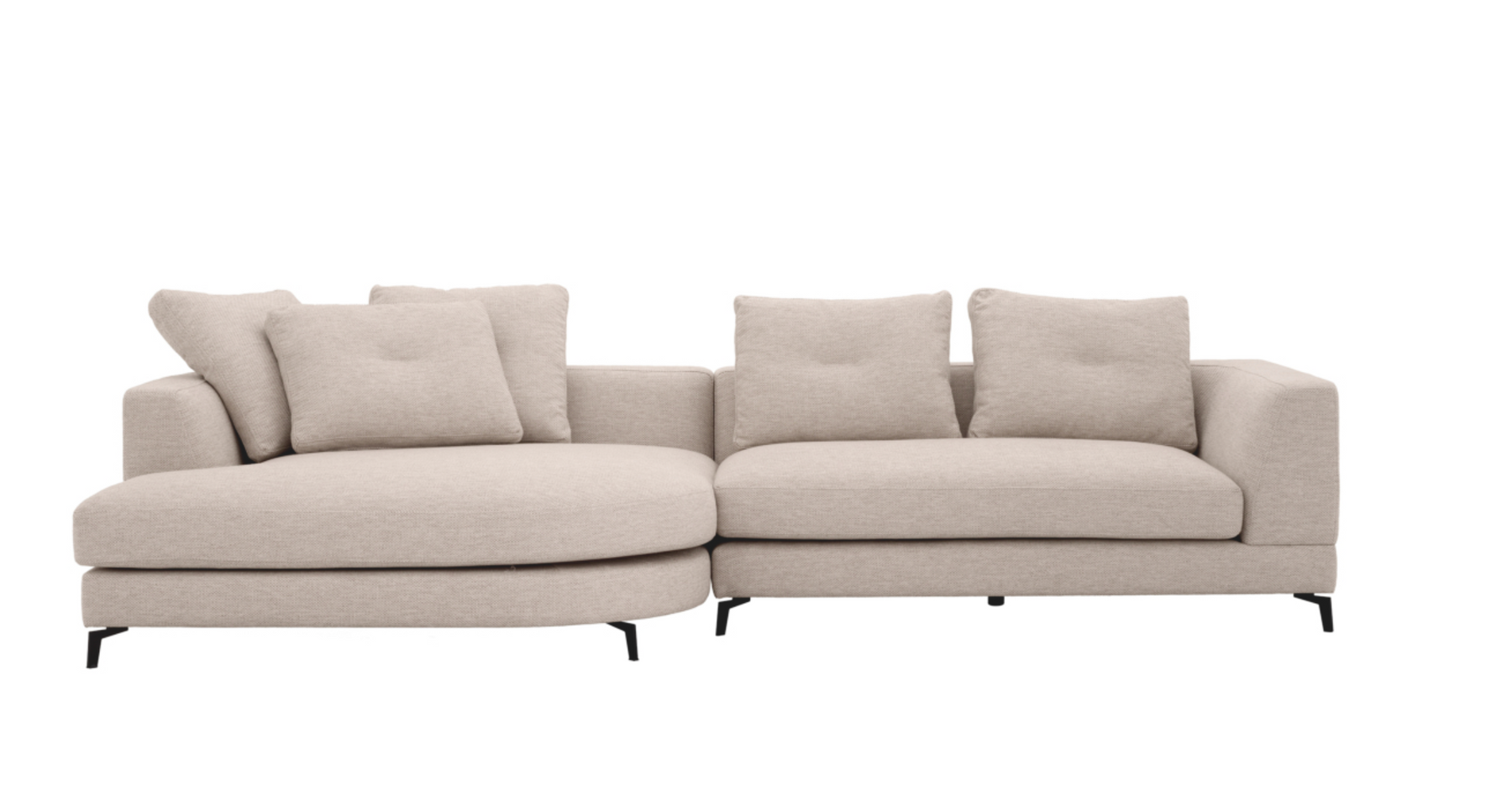- Diseño y estilo: sofá seccional moderno con silueta delgada y diseño contemporáneo a la izquierda