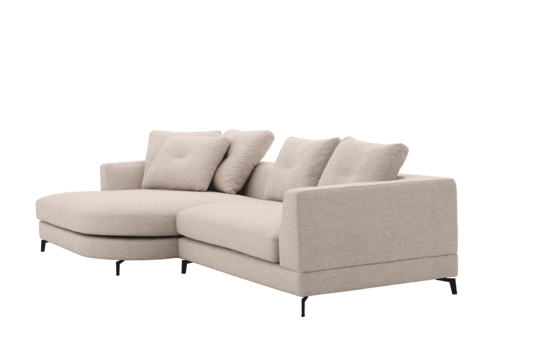 Los modernos en el lado izquierdo de las secciones revelan sensibles modernos y una silueta delgada. Los pies negros crean un contraste gráfico con el exuberante revestimiento de Aveiro y encarnan una atmósfera de lujo sofisticado. Varias almohadas de lanzamiento permiten una relajación completa. Abre tus sentidos para la tentadora forma de modernos en tu espacio vital.