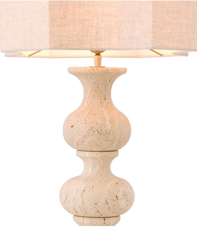 "Dé a cada habitación elegancia sin esfuerzo con la lámpara de mesa mabel de Eichholtz. Su pie de travertino único recuerda a un apilamiento de jarrones descendentes, redondeados con un acabado de latón. Completamente con un paraguas de lino, esta elegante lámpara de mesa le da a cada decoración el toque final ".