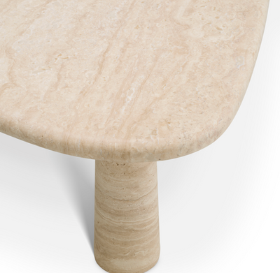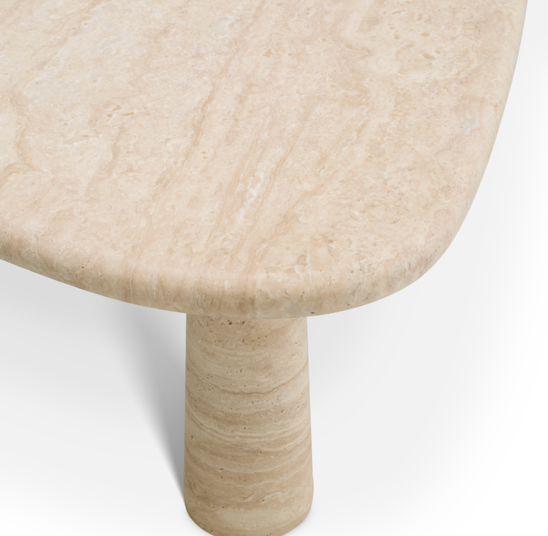 "La mesa auxiliar de largo l de Eichholtz Combina lujosa artesanía con la magia natural de Travertin. Una pieza de declaración para cada interior exigente ".