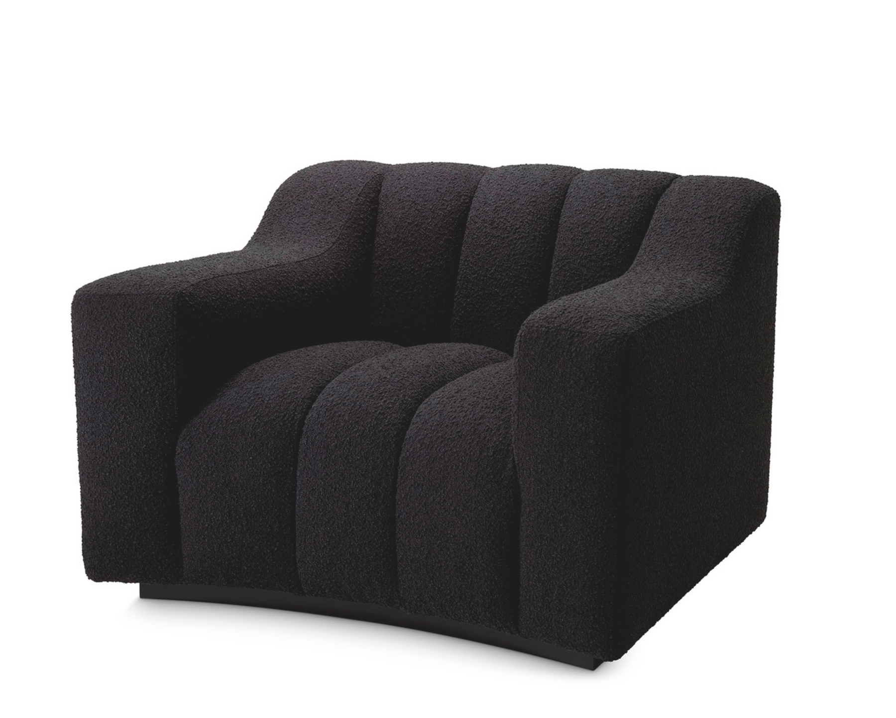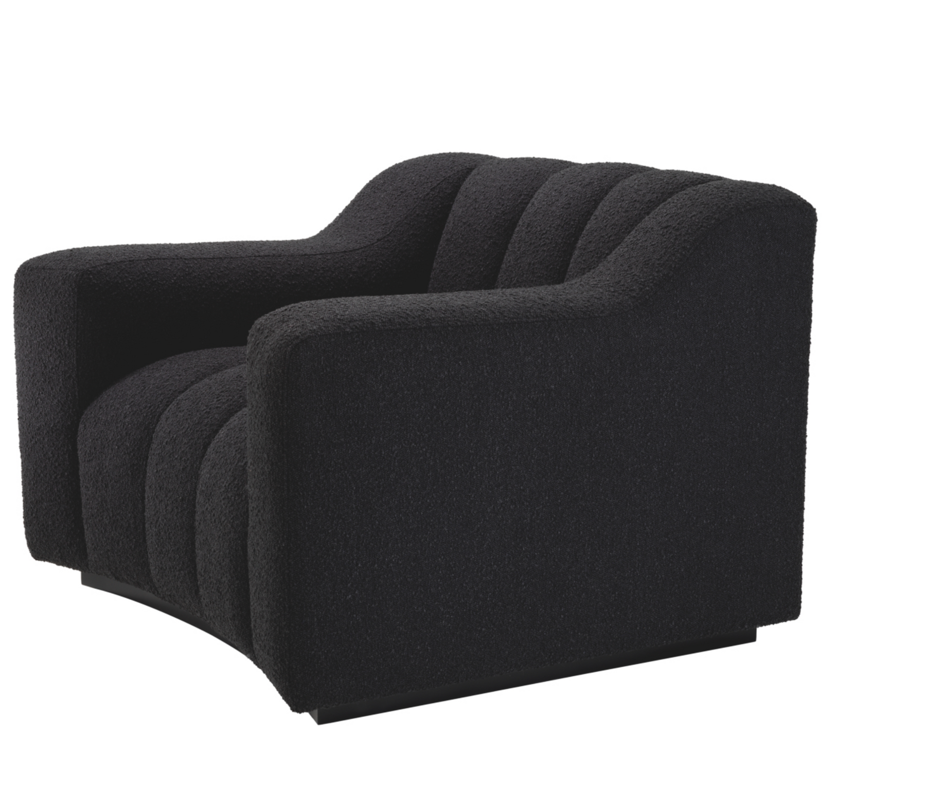 El sillón de Kelly trae mucho encanto y calidez a su sala de estar con su cubierta negra. Con su diseño suavemente curvado y acolchado profundo, este hermoso sillón ofrece un asiento muy cómodo.