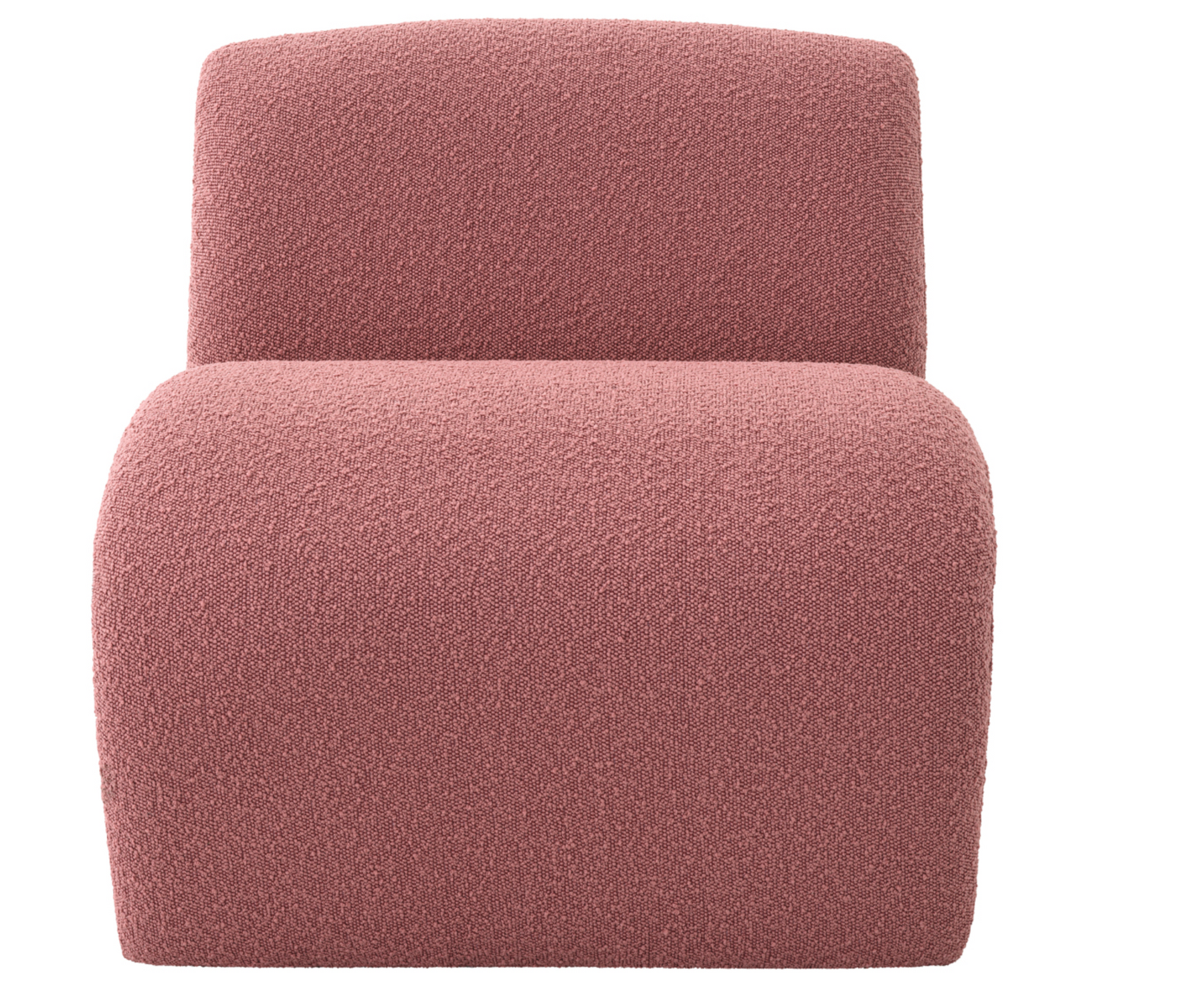 El sillón de Vignola está cubierto de tela de bouclé rosa duradera y le da a su espacio vital una sensación de sofisticación. Sumérgete profundamente en la Vignola y siéntete abrazado por su respaldo. La estética moderna de la Vignola refleja una sensación de simplicidad y elegancia, y su diseño contemporáneo único permite un aspecto atemporal para los próximos años.