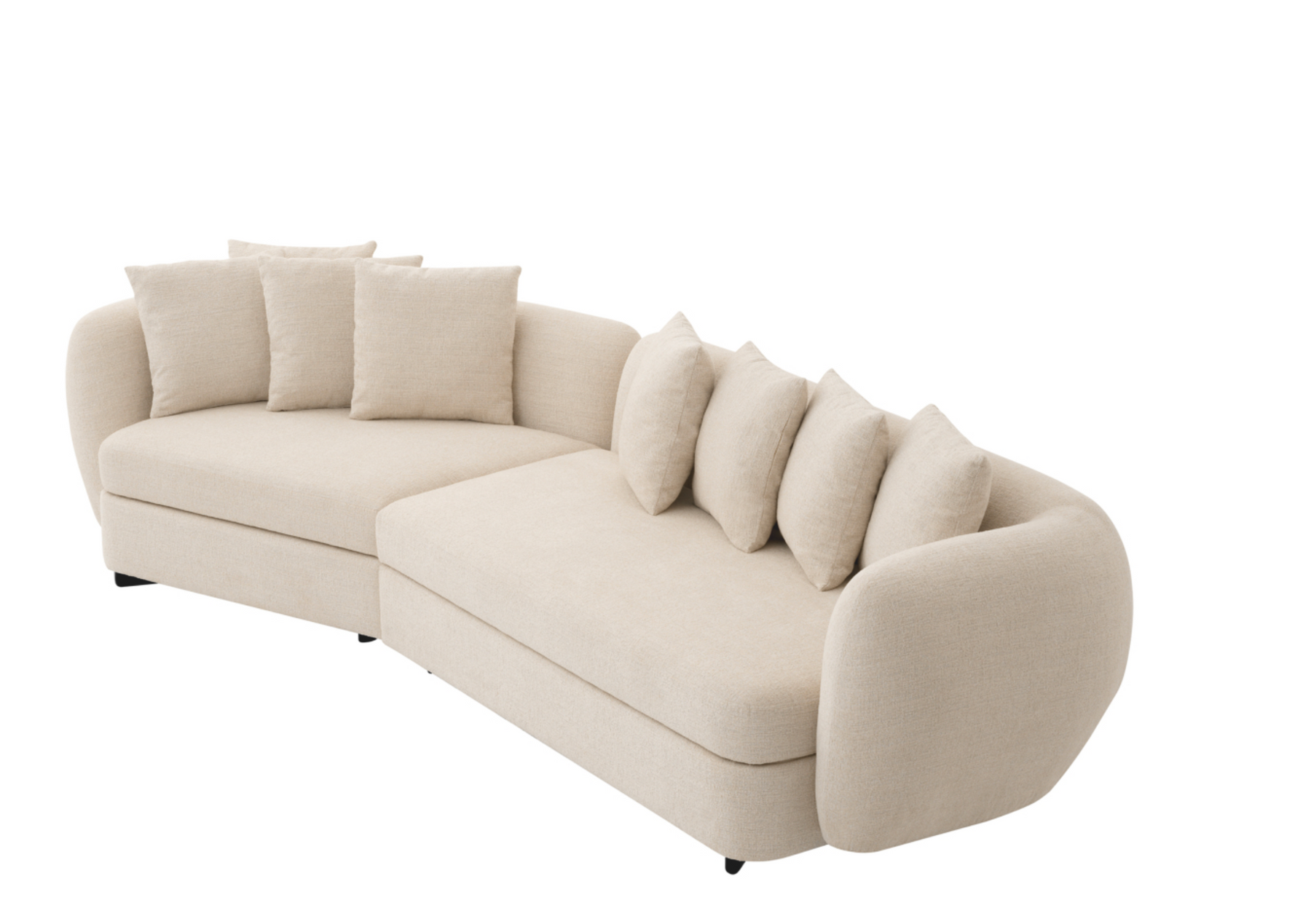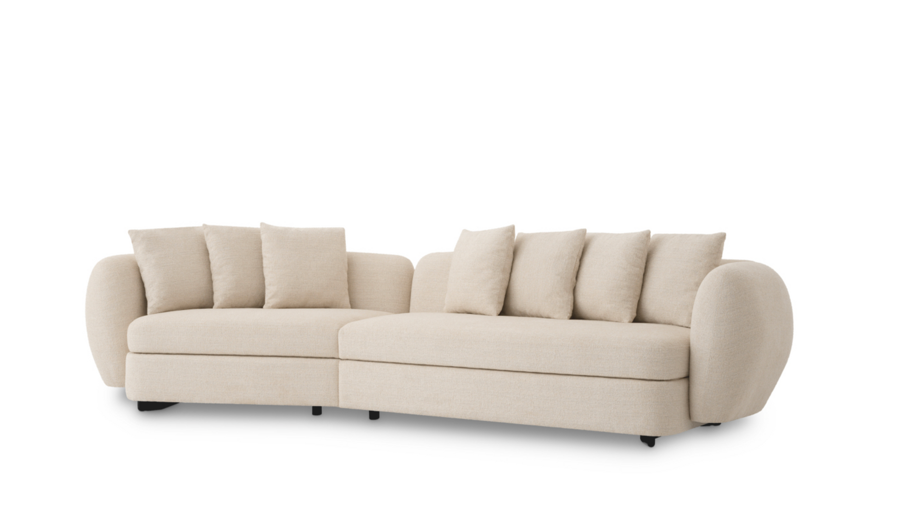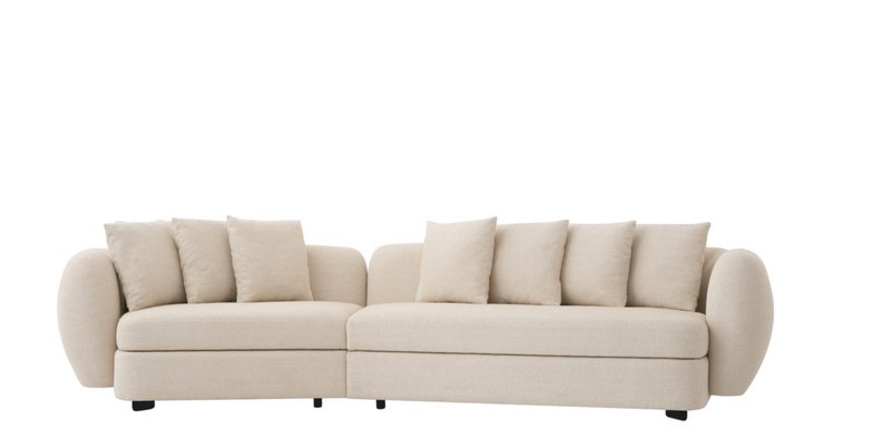 Disfruta del opulento relleno completo de los sofás de Sidney. En relación con una aliviante cubierta textil de Nuoro Beige y completada con pies negros, la forma exuberante y redondeada del Sidney es la quintaesencia del lujo. Sus brazos de gran tamaño, su forma curva única y varias almohadas de lanzamiento le dan una apariencia contemporánea que armoniza con una variedad de estética y le da a su espacio estilo y sustancia.