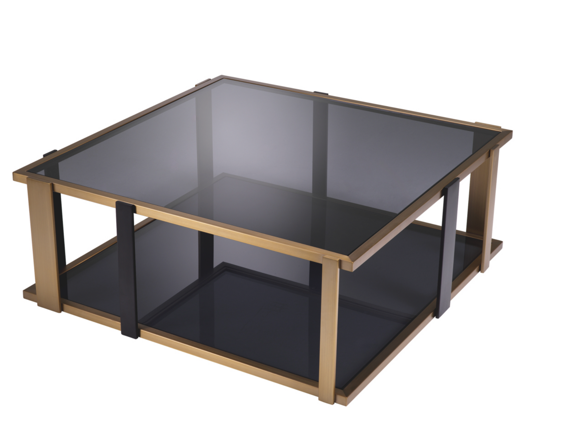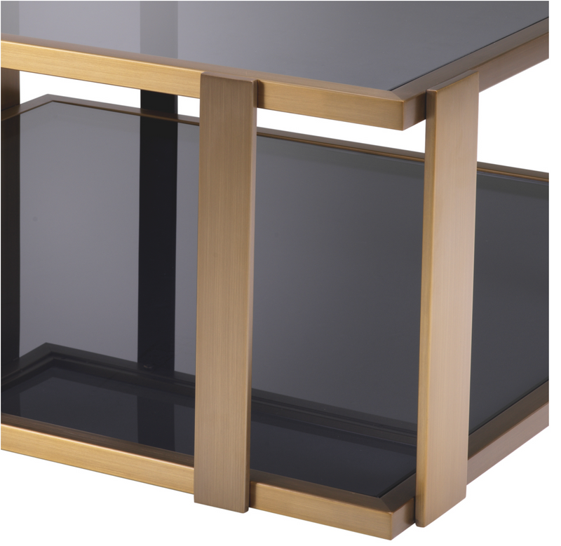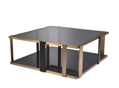 El clio Table de Salon Unido de manera armoniosa cepillada de latón, acabado negro y vidrio de humo y, por lo tanto, crea un equilibrio perfecto de materiales y texturas. Más que solo un objeto funcional; La mesa de café Clio se convierte en un centro elegante y llamativo, que actualiza la estética de su hogar y estimula las conversaciones entre sus invitados.