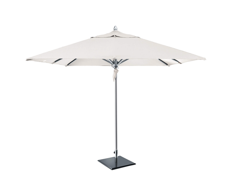 "Disfrute de las sombras con estilo: el Carlo Parasol, de 350 cm de diámetro, hecho de aluminio duradero, listo para cada temporada.